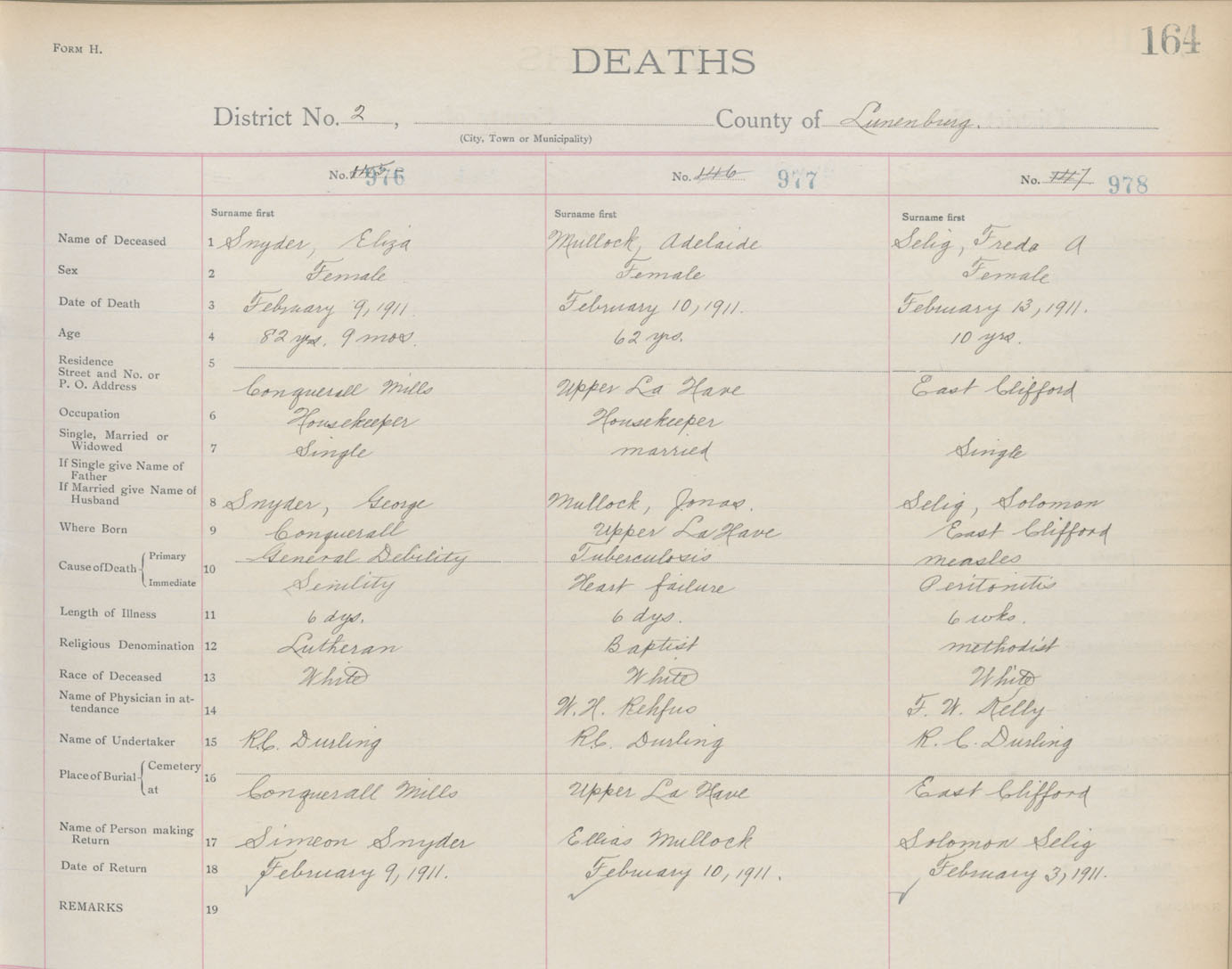 Death Registration: Year: 1911 book: 13 page: 164 number: 978
