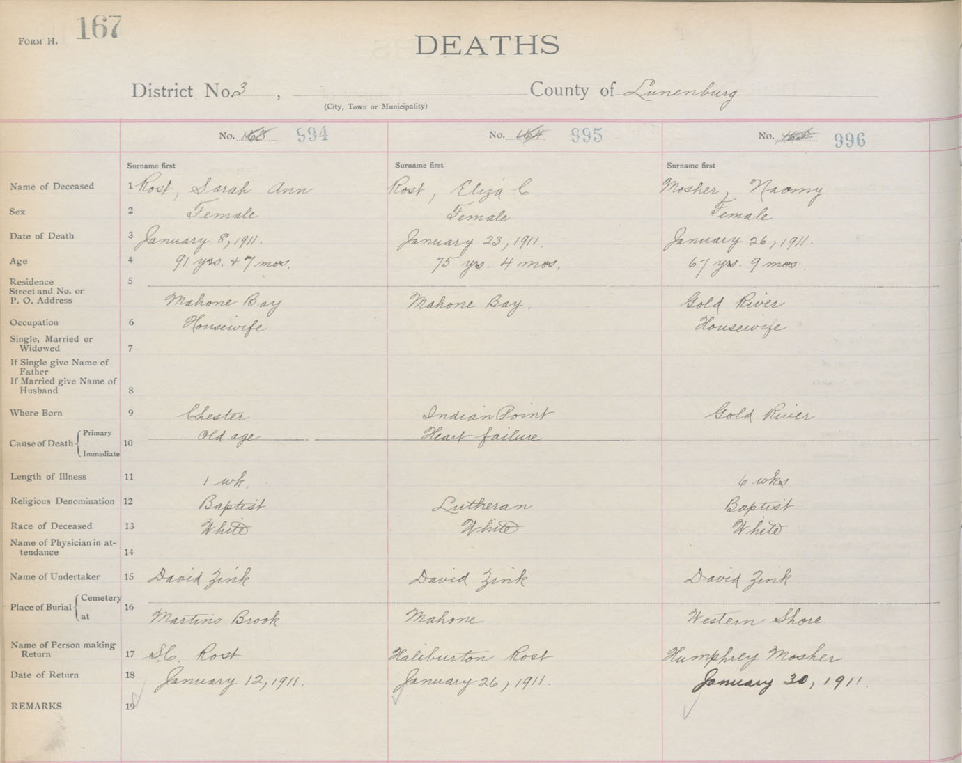 Death Registration: Year: 1911 book: 13 page: 167 number: 996