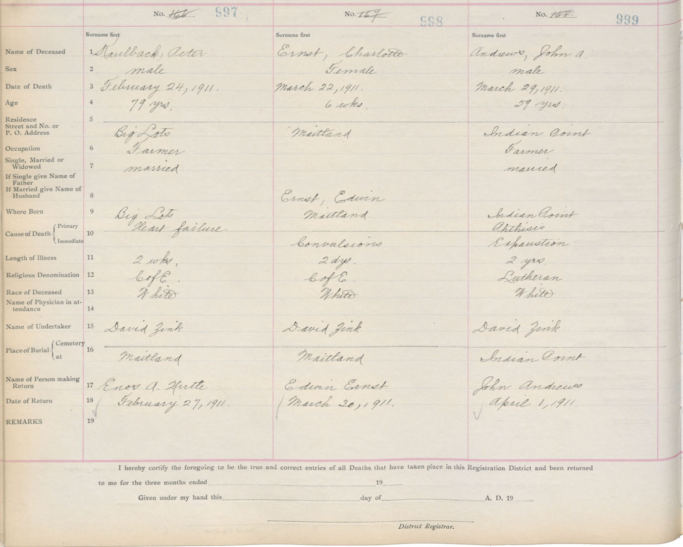Death Registration: Year: 1911 book: 13 page: 167 number: 999
