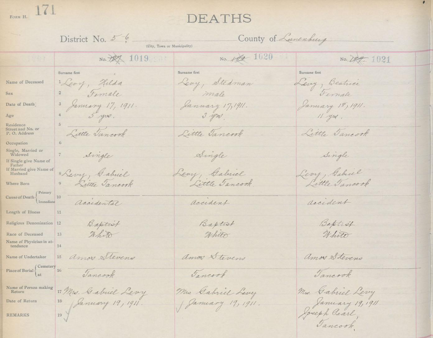 Death Registration: Year: 1911 book: 13 page: 171 number: 1021