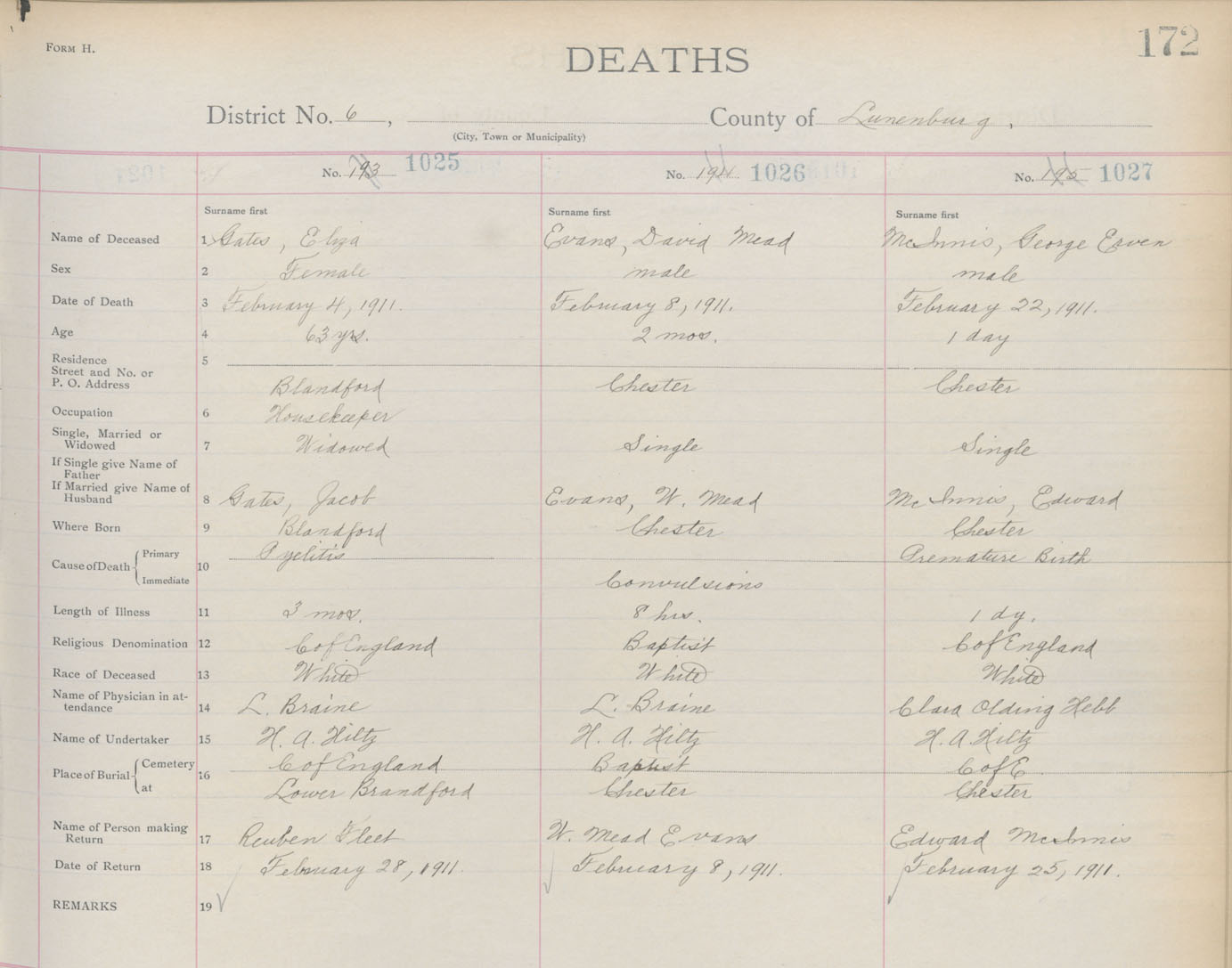 Death Registration: Year: 1911 book: 13 page: 172 number: 1027