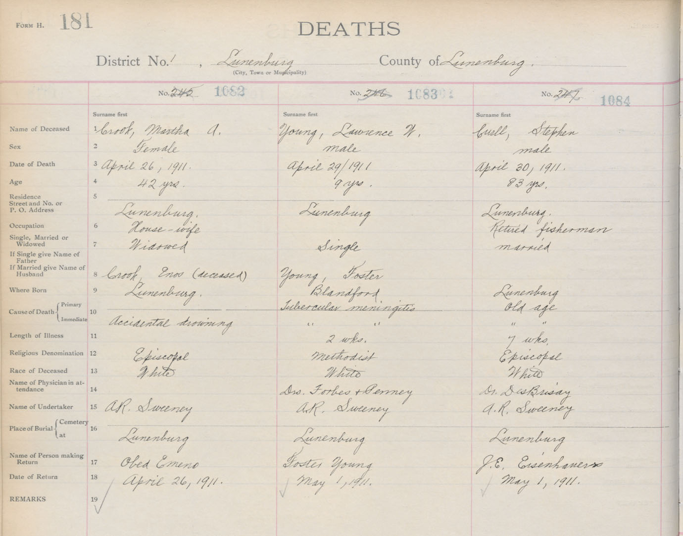 Death Registration: Year: 1911 book: 13 page: 181 number: 1084