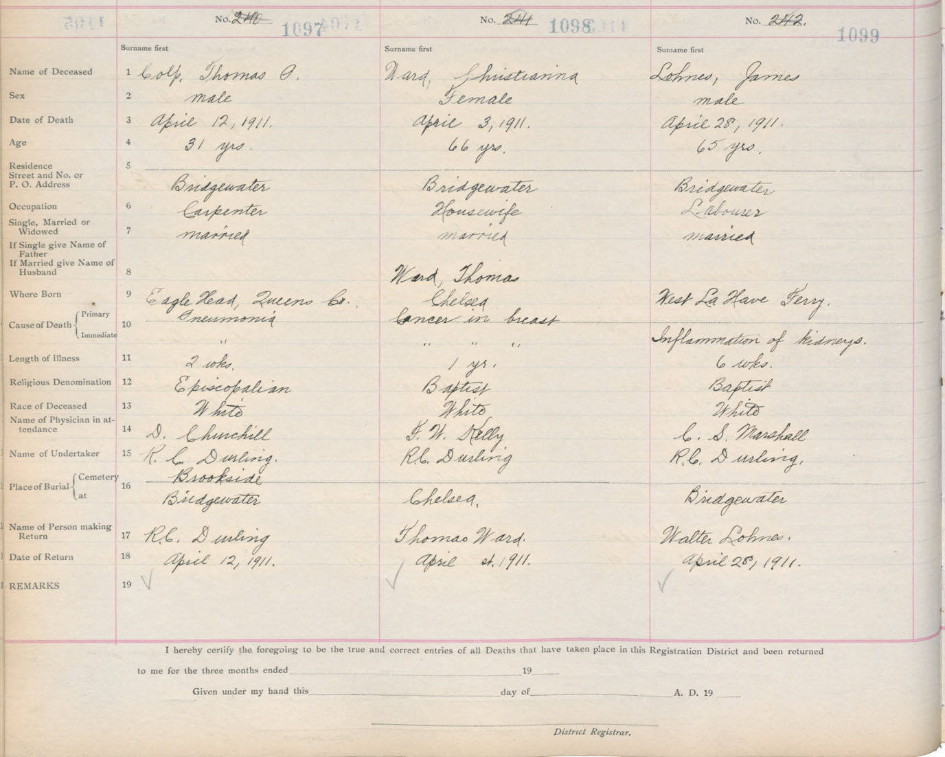 Death Registration: Year: 1911 book: 13 page: 183 number: 1097