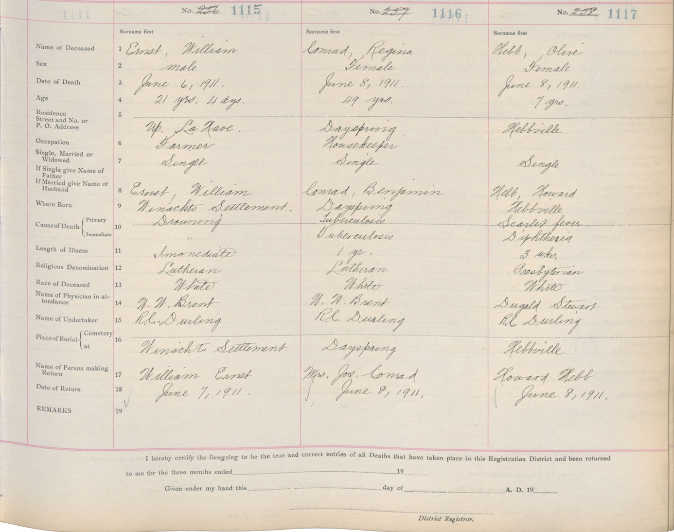Death Registration: Year: 1911 book: 13 page: 186 number: 1115
