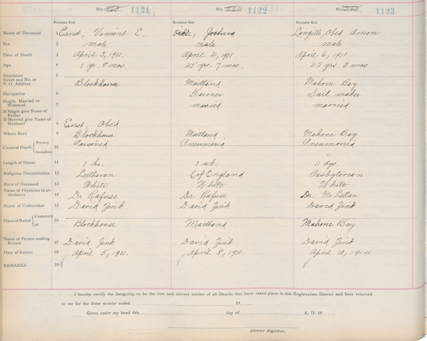 Death Registration: Year: 1911 book: 13 page: 187 number: 1121