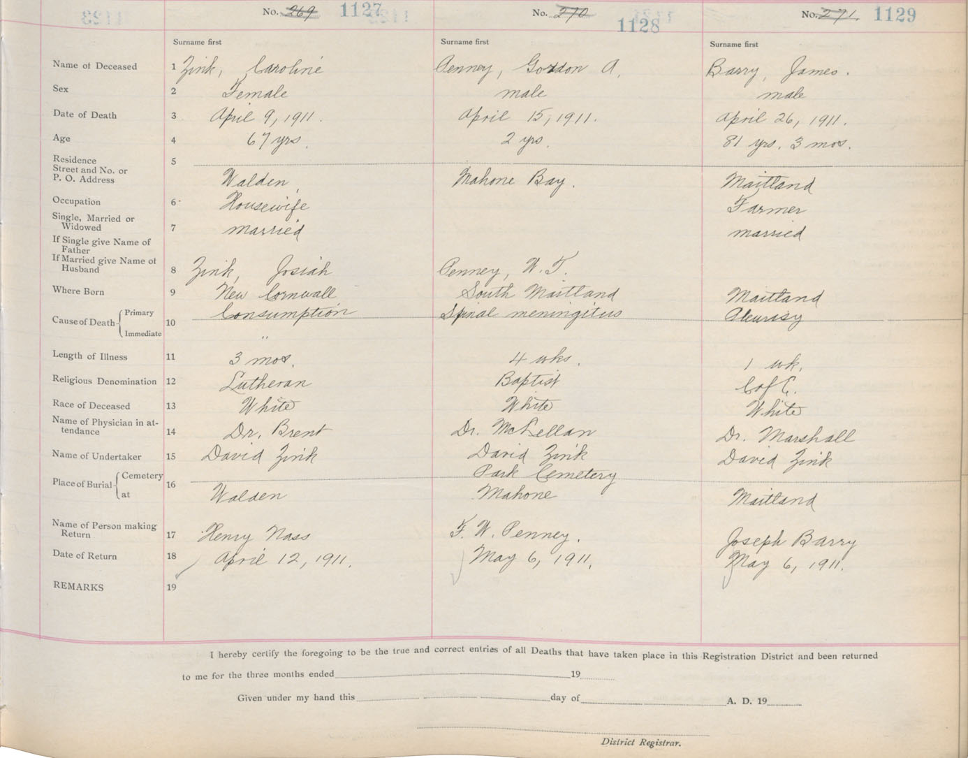 Death Registration: Year: 1911 book: 13 page: 188 number: 1127