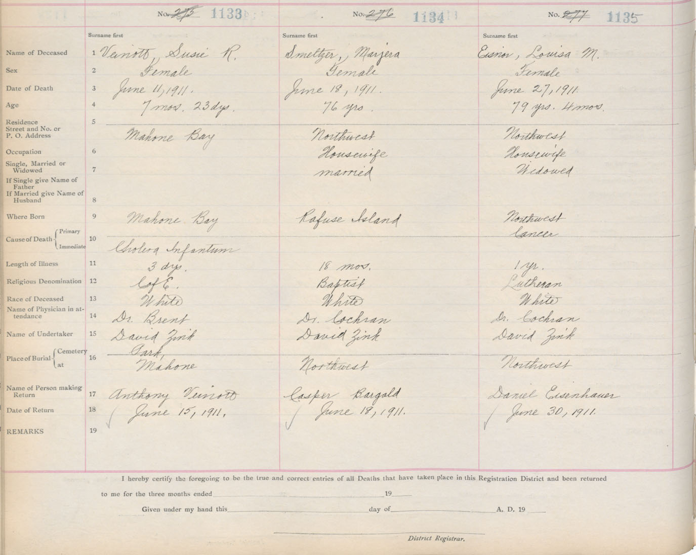 Death Registration: Year: 1911 book: 13 page: 189 number: 1133