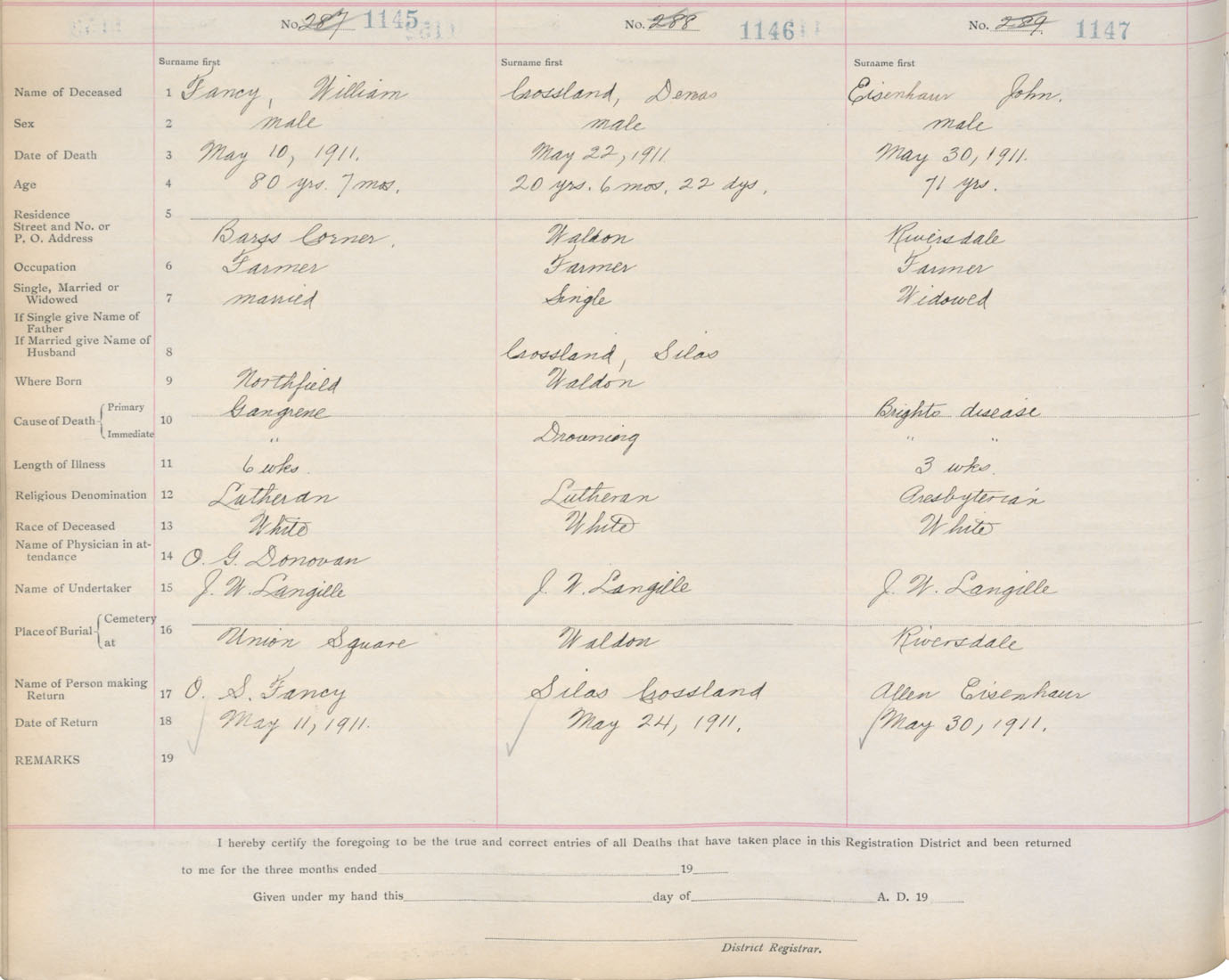 Death Registration: Year: 1911 book: 13 page: 191 number: 1145