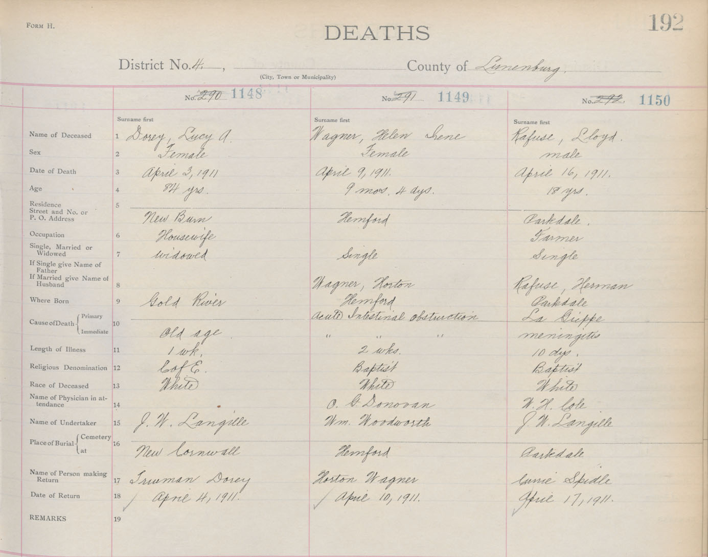 Death Registration: Year: 1911 book: 13 page: 192 number: 1148