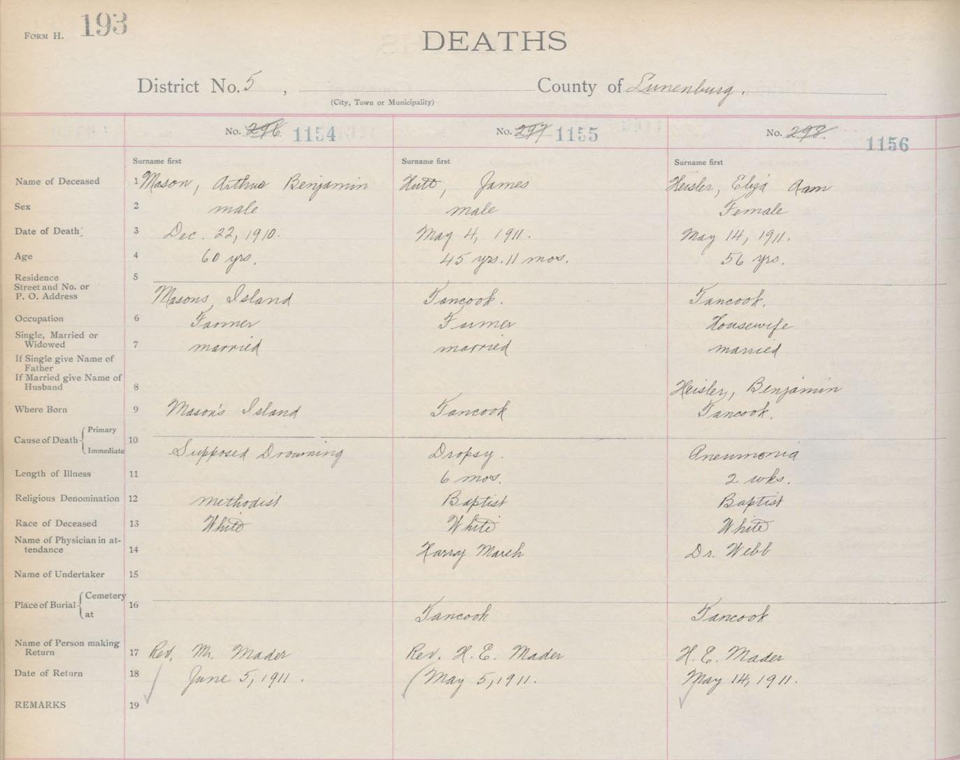 Death Registration: Year: 1911 book: 13 page: 193 number: 1154
