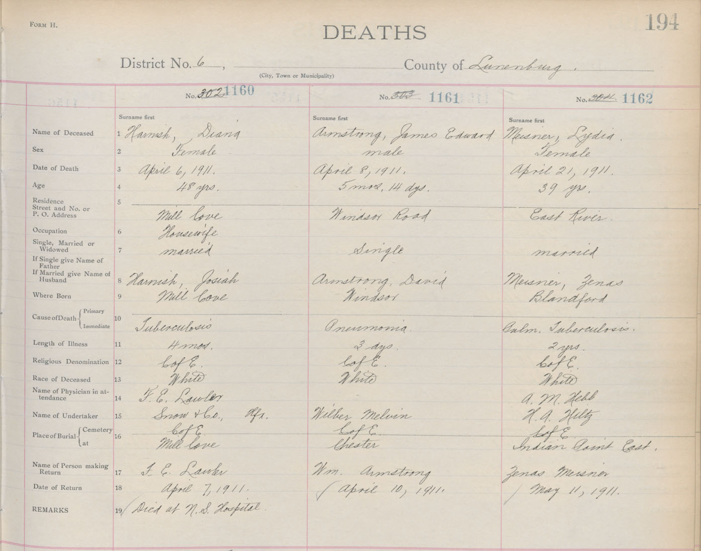 Death Registration: Year: 1911 book: 13 page: 194 number: 1160