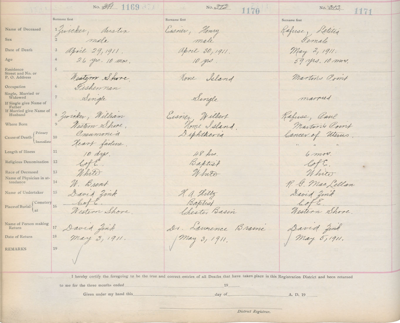 Death Registration: Year: 1911 book: 13 page: 195 number: 1169
