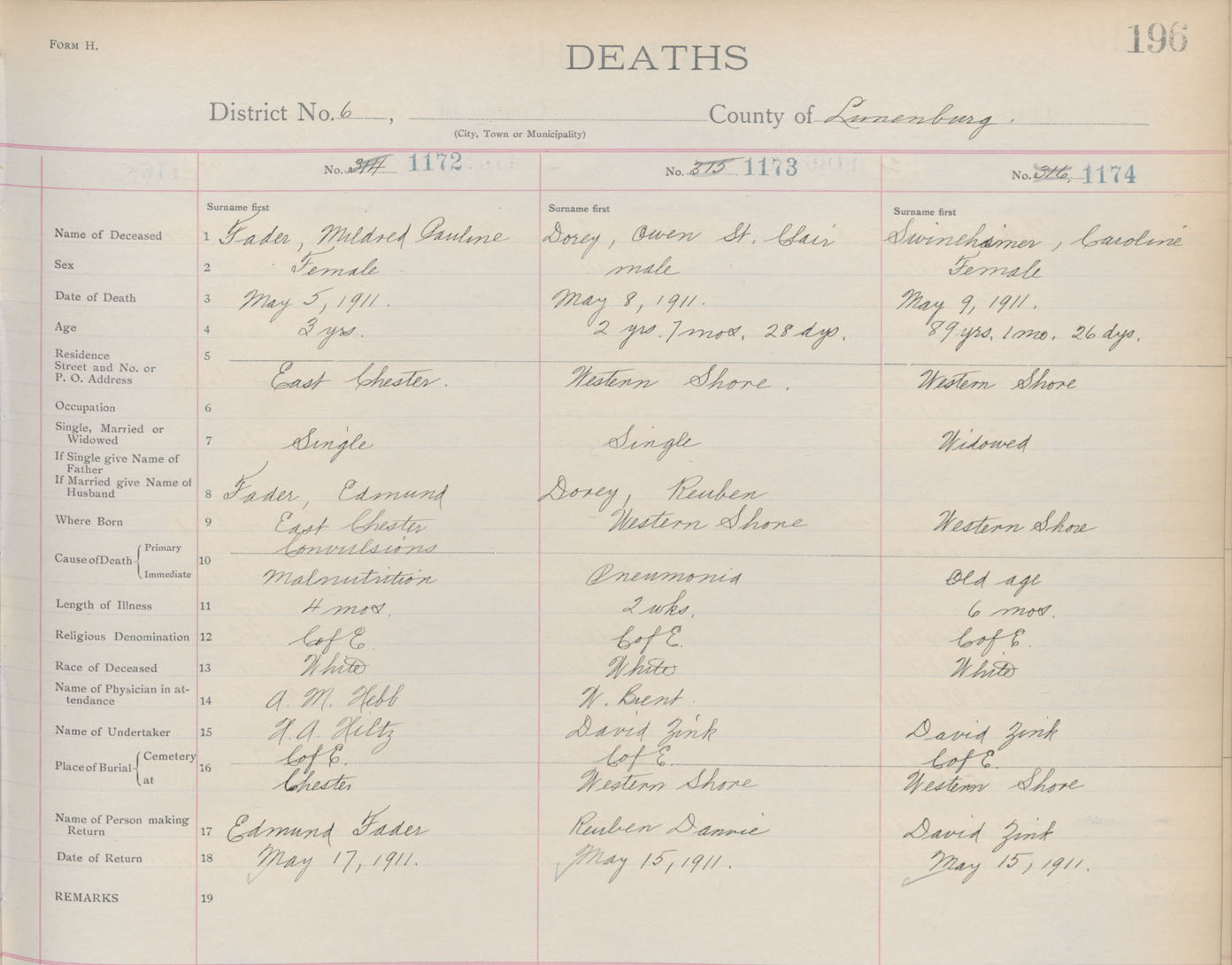 Death Registration: Year: 1911 book: 13 page: 196 number: 1172