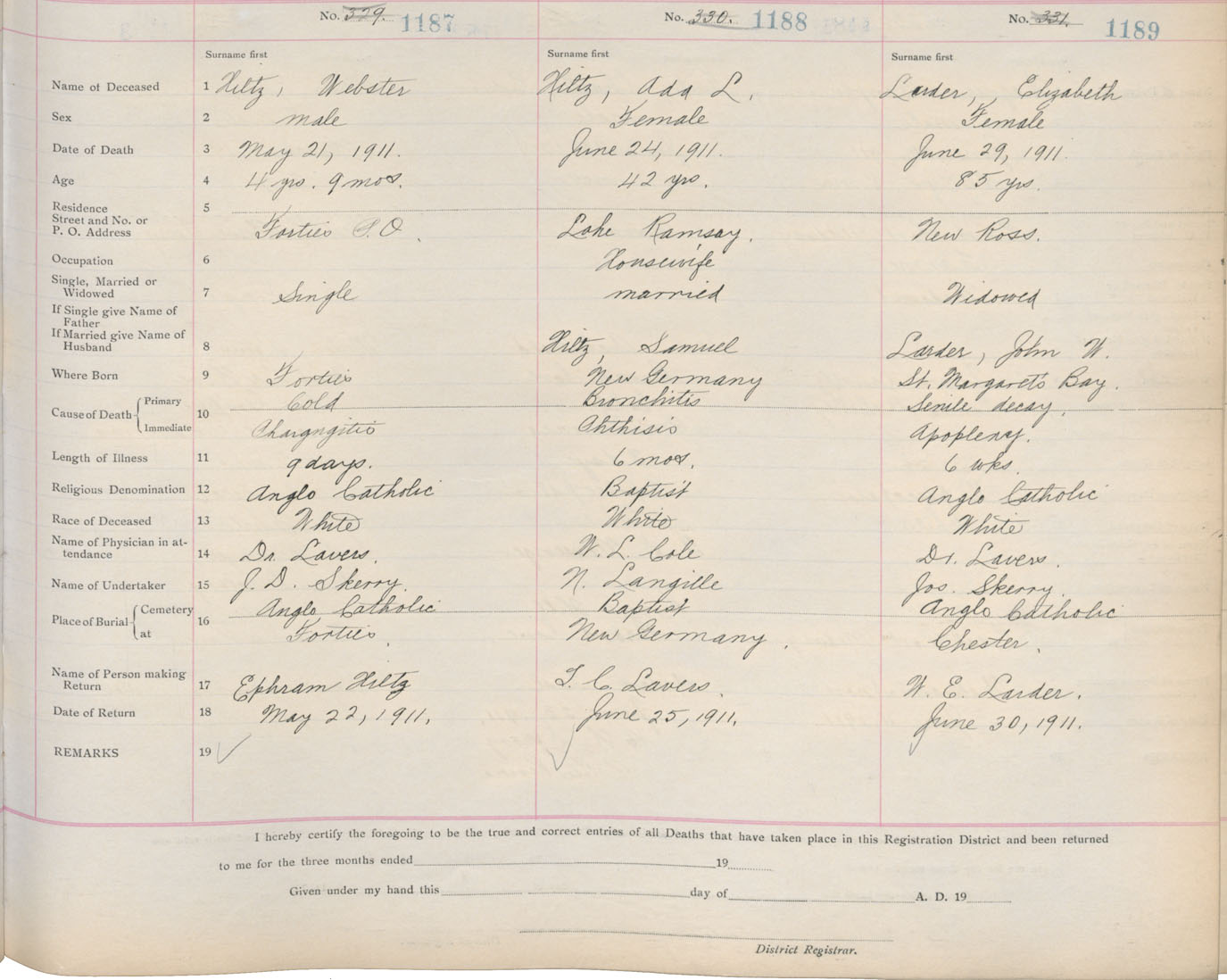 Death Registration: Year: 1911 book: 13 page: 198 number: 1187