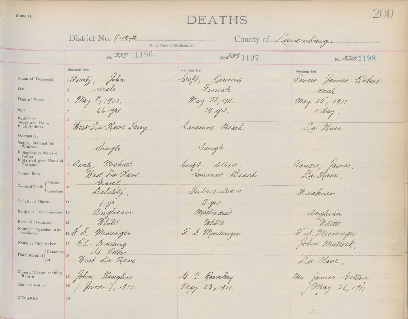 Death Registration: Year: 1911 book: 13 page: 200 number: 1196