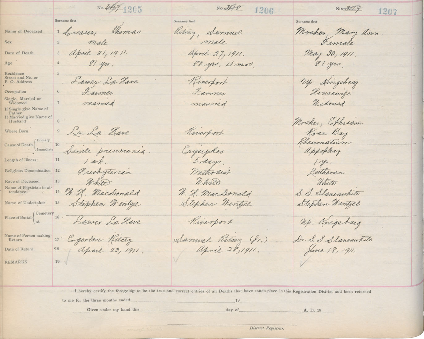 Death Registration: Year: 1911 book: 13 page: 201 number: 1205