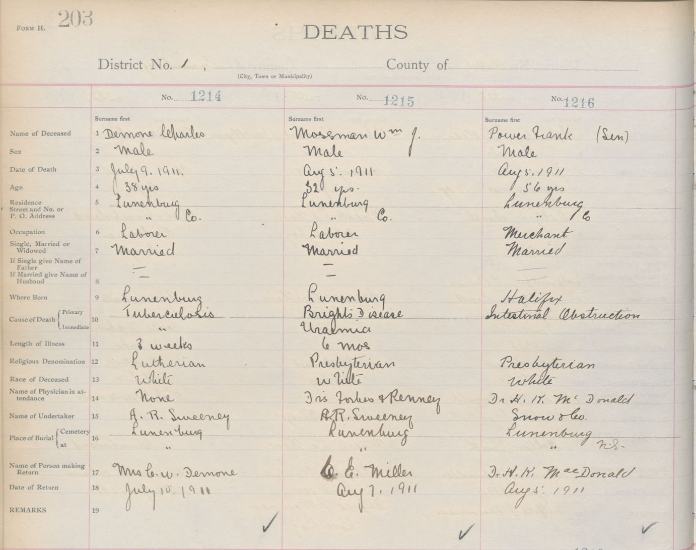 Death Registration: Year: 1911 book: 13 page: 203 number: 1214