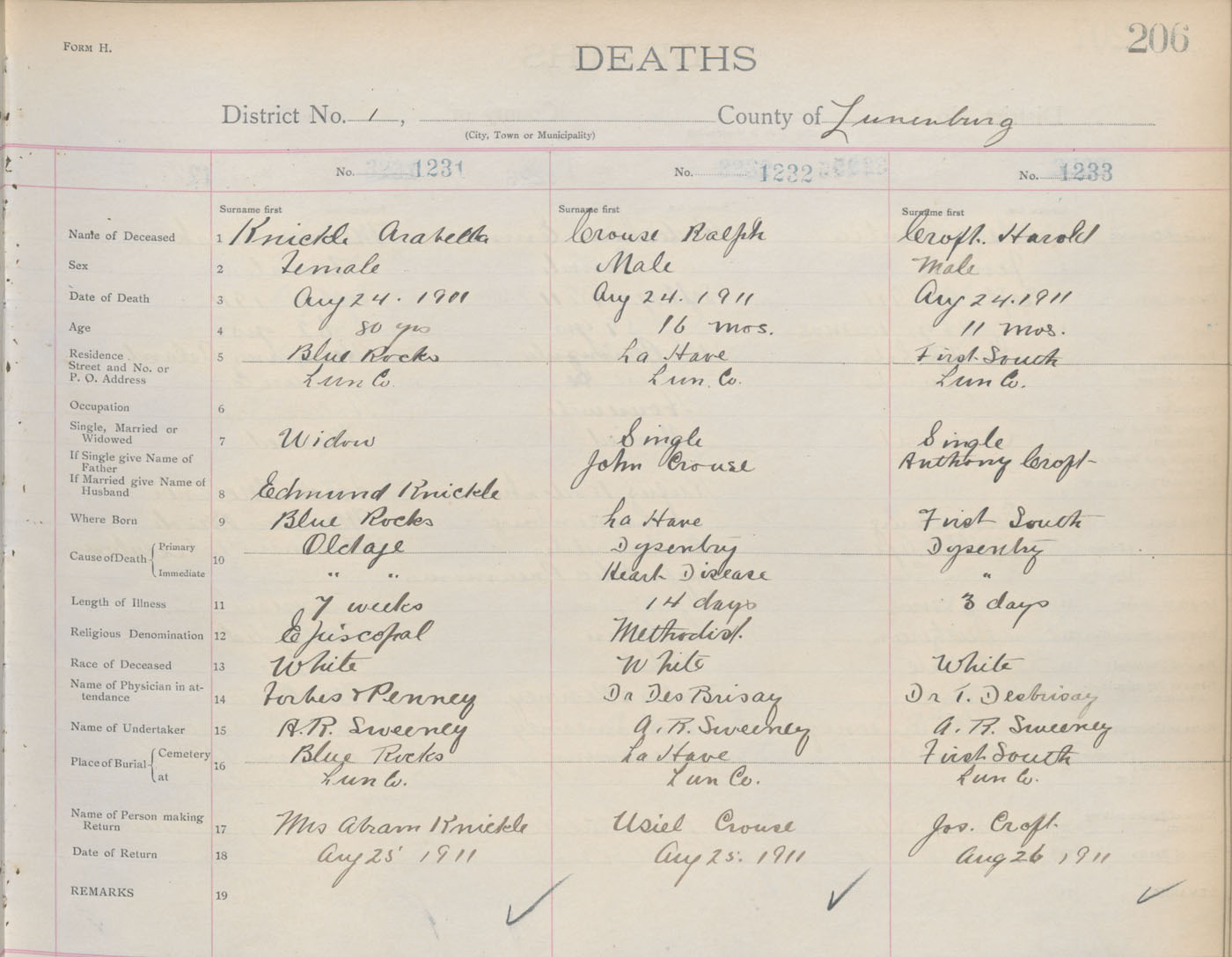 Death Registration: Year: 1911 book: 13 page: 206 number: 1231
