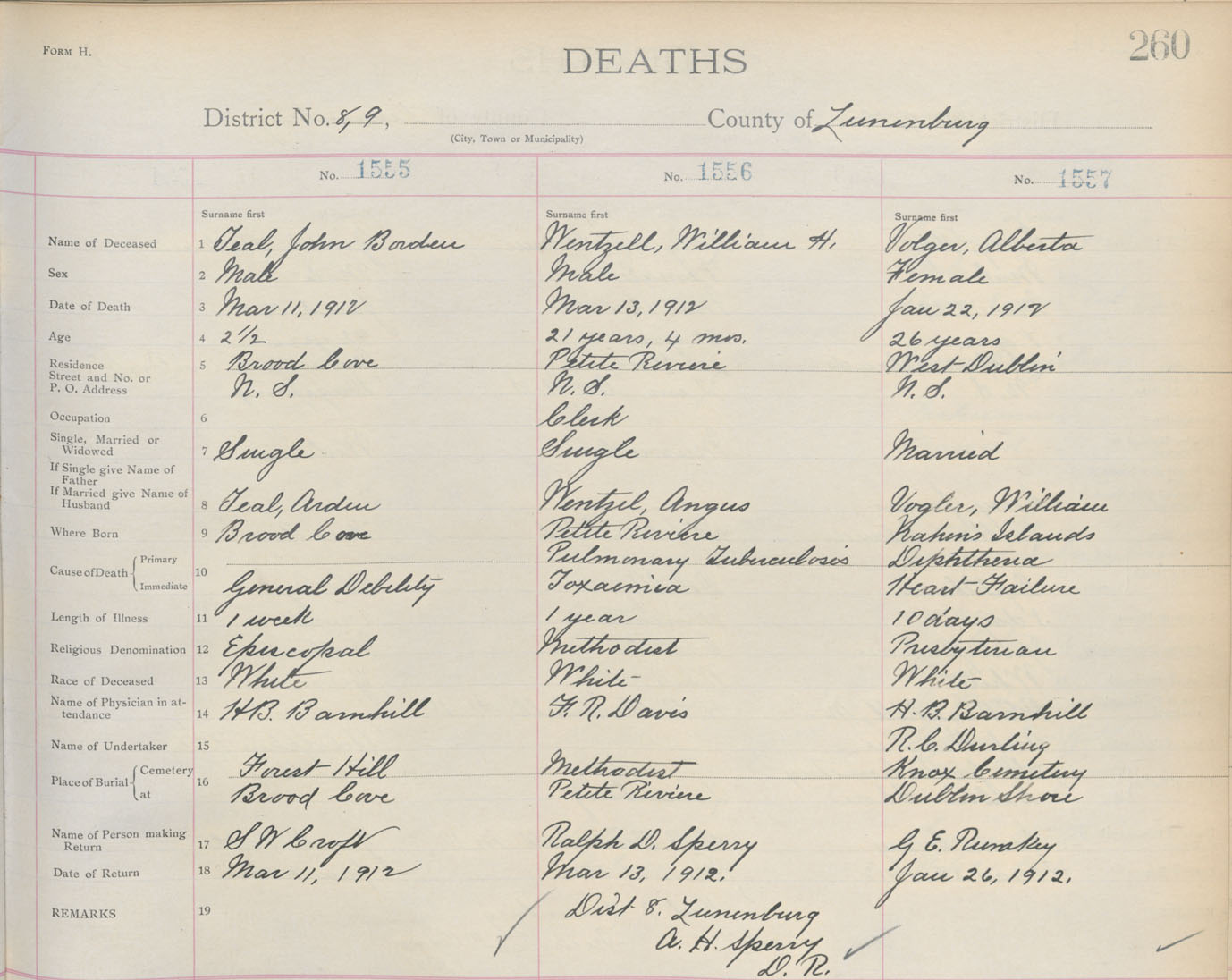 Death Registration: Year: 1912 book: 13 page: 260 number: 1557