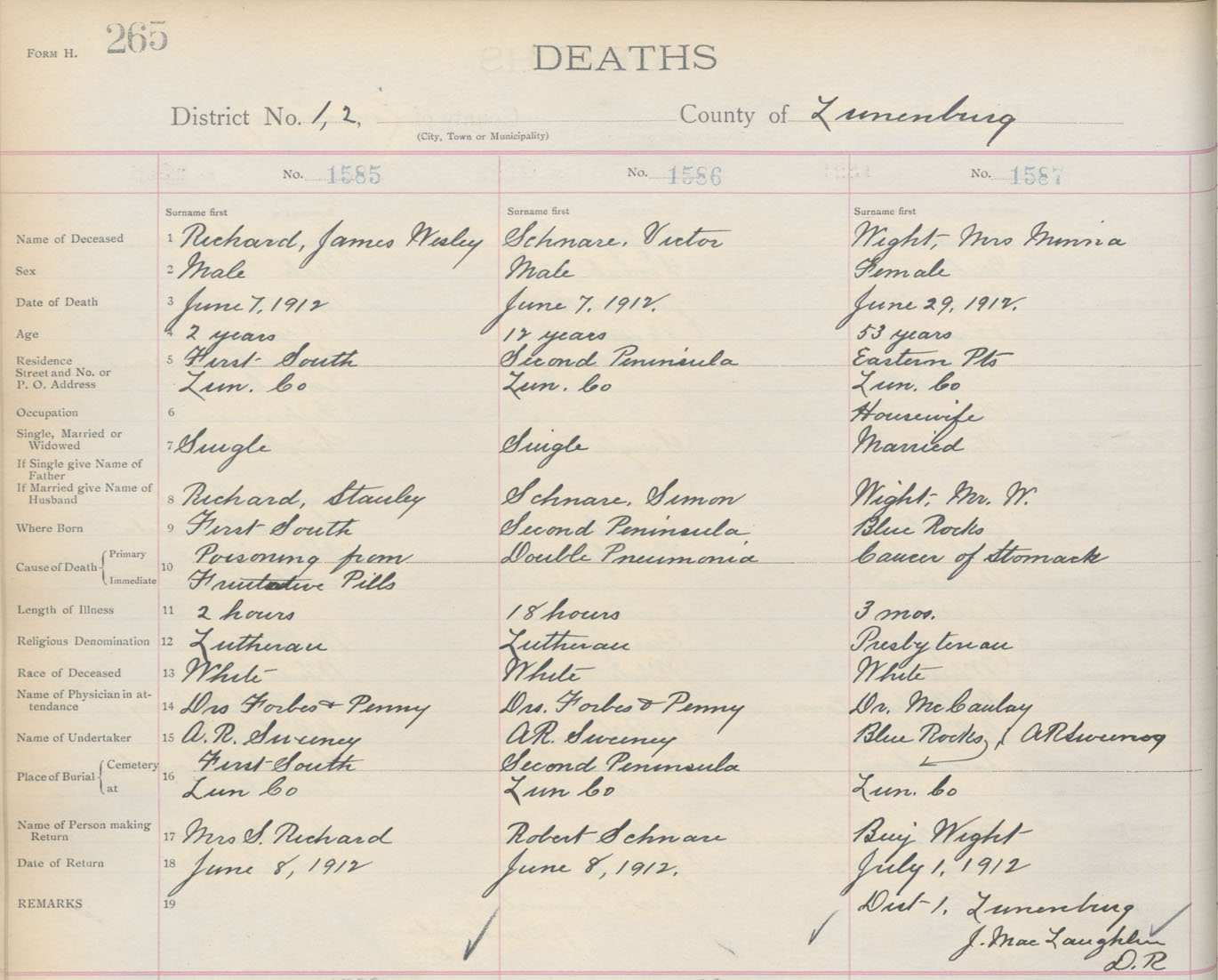 Death Registration: Year: 1912 book: 13 page: 265 number: 1587