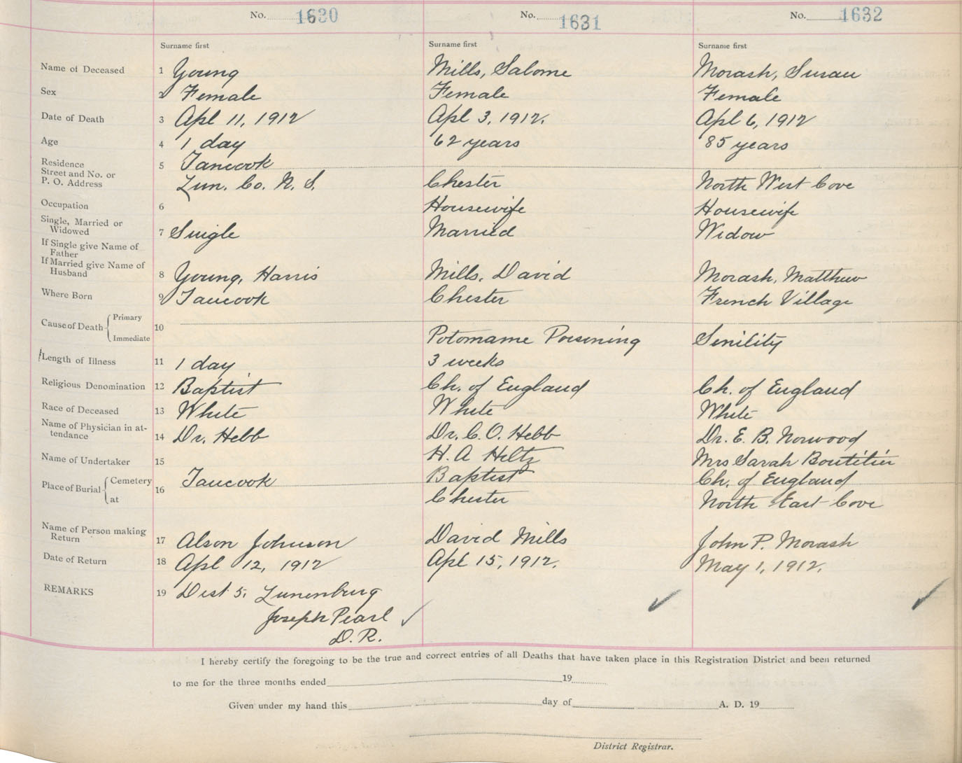 Death Registration: Year: 1912 book: 13 page: 272 number: 1632