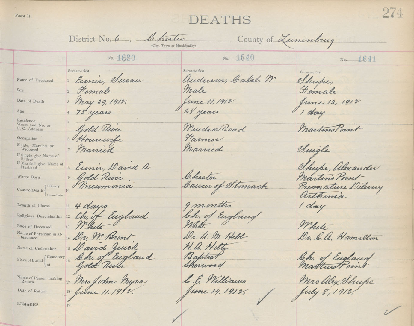 Female Death Registration: Year: 1912 book: 13 page: 274 number: 1641