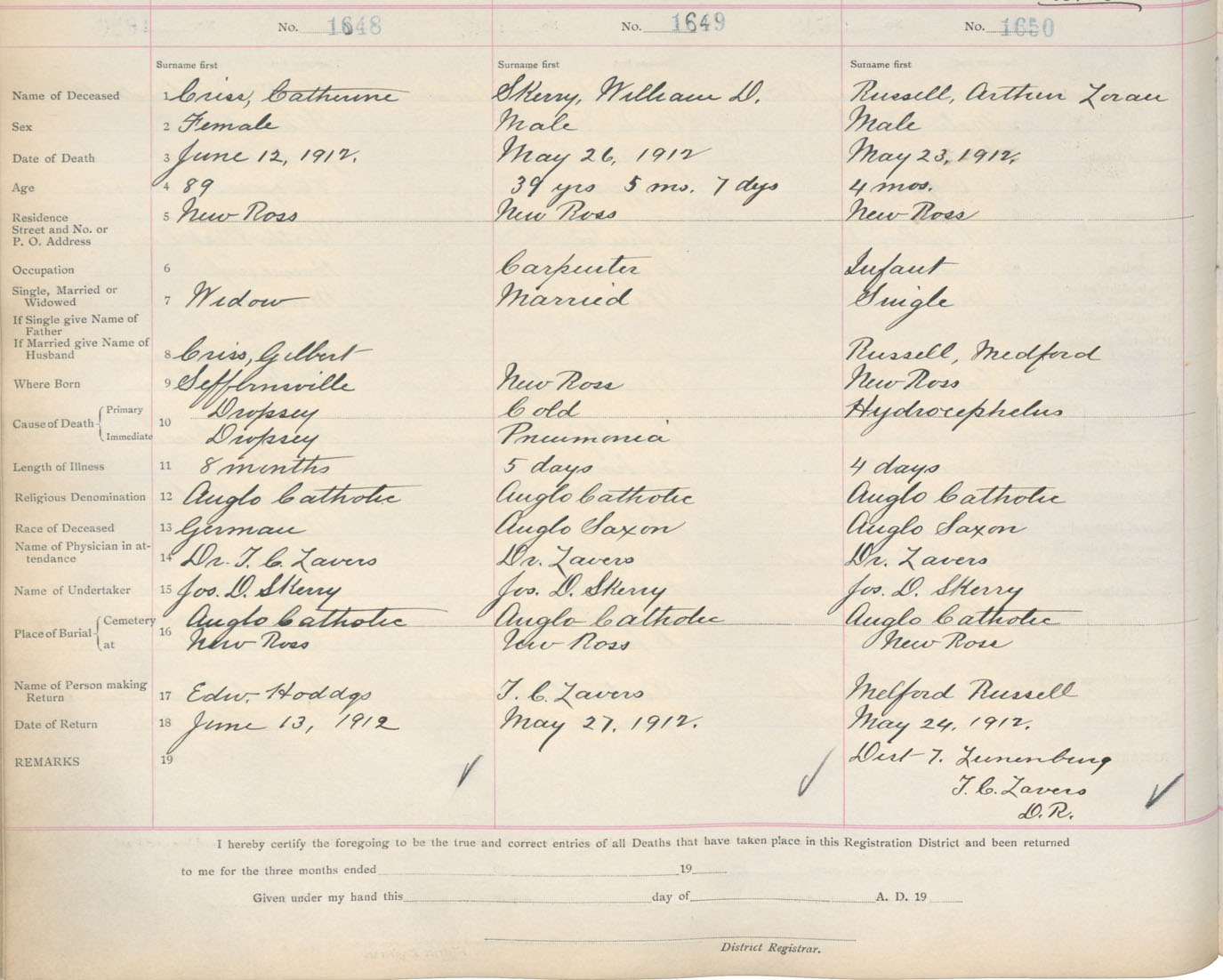 Death Registration: Year: 1912 book: 13 page: 275 number: 1650