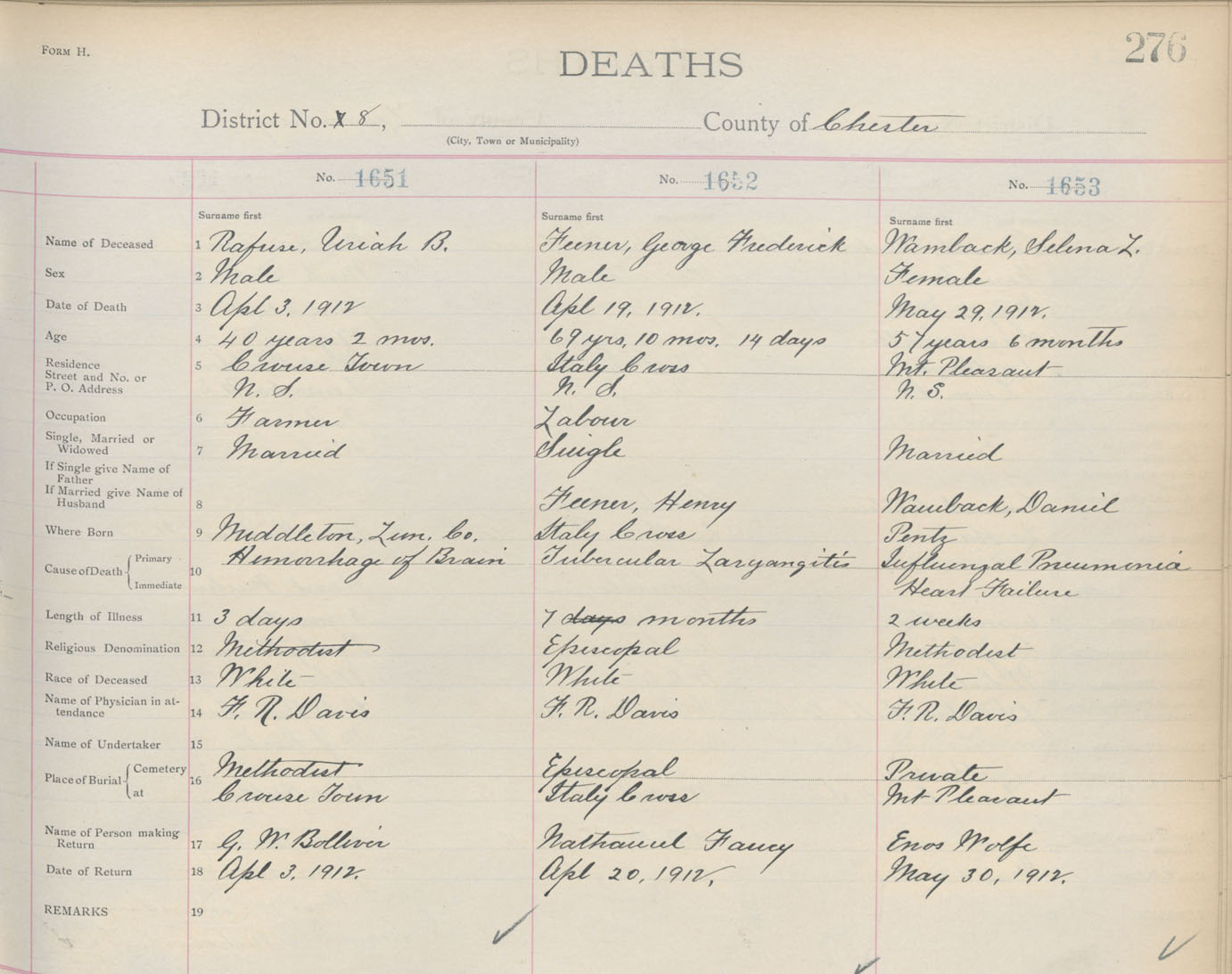 Death Registration: Year: 1912 book: 13 page: 276 number: 1653