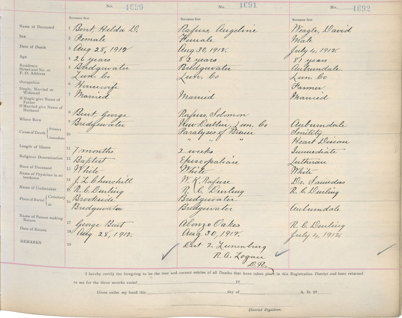 Death Registration: Year: 1912 book: 13 page: 282 number: 1692