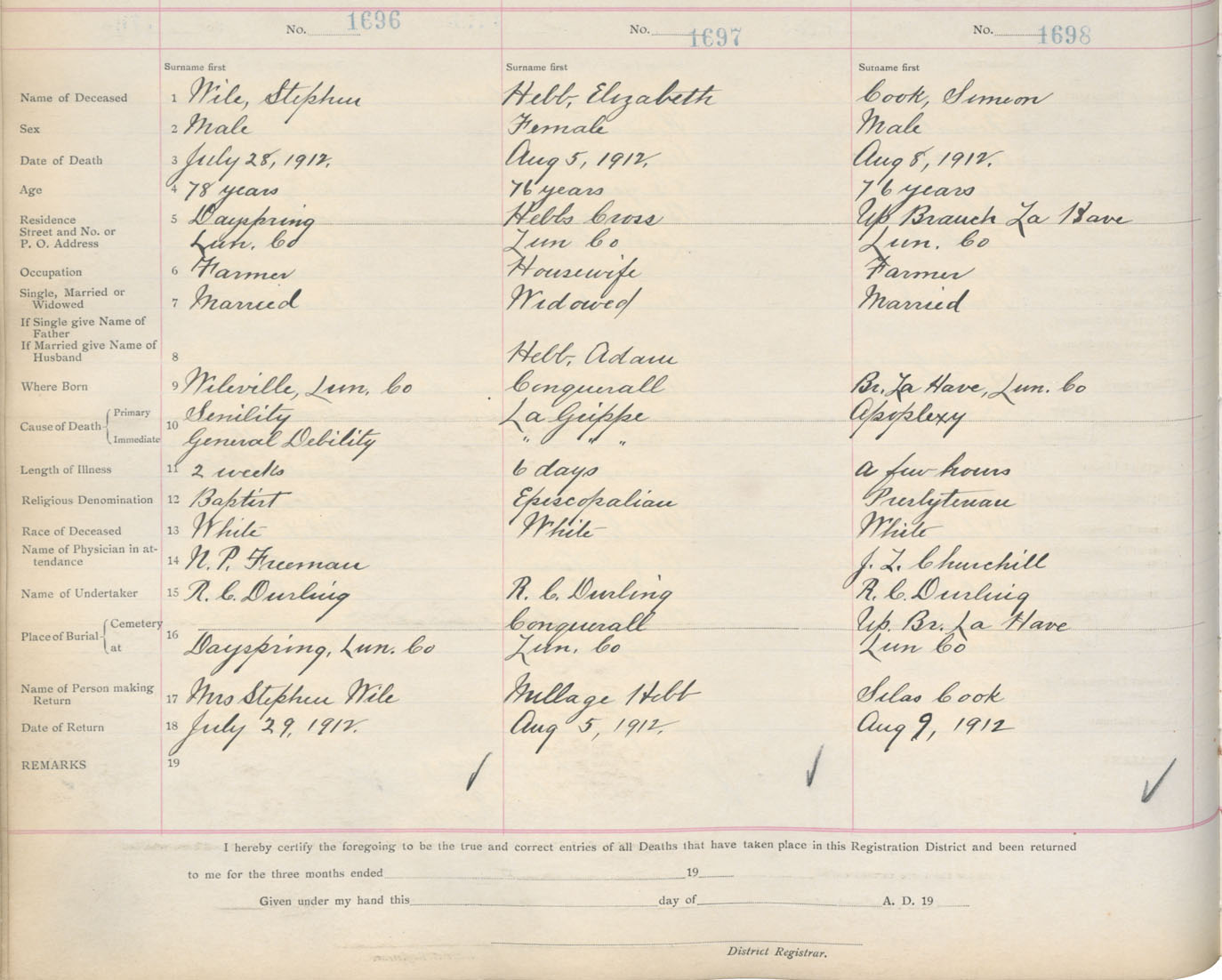 Death Registration: Year: 1912 book: 13 page: 283 number: 1698