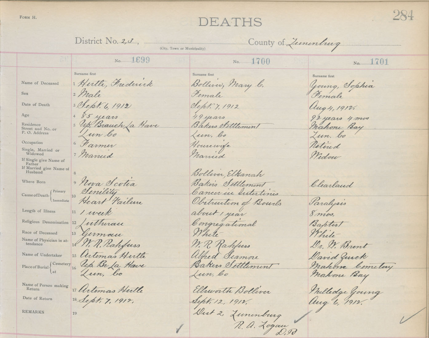 Death Registration: Year: 1912 book: 13 page: 284 number: 1701