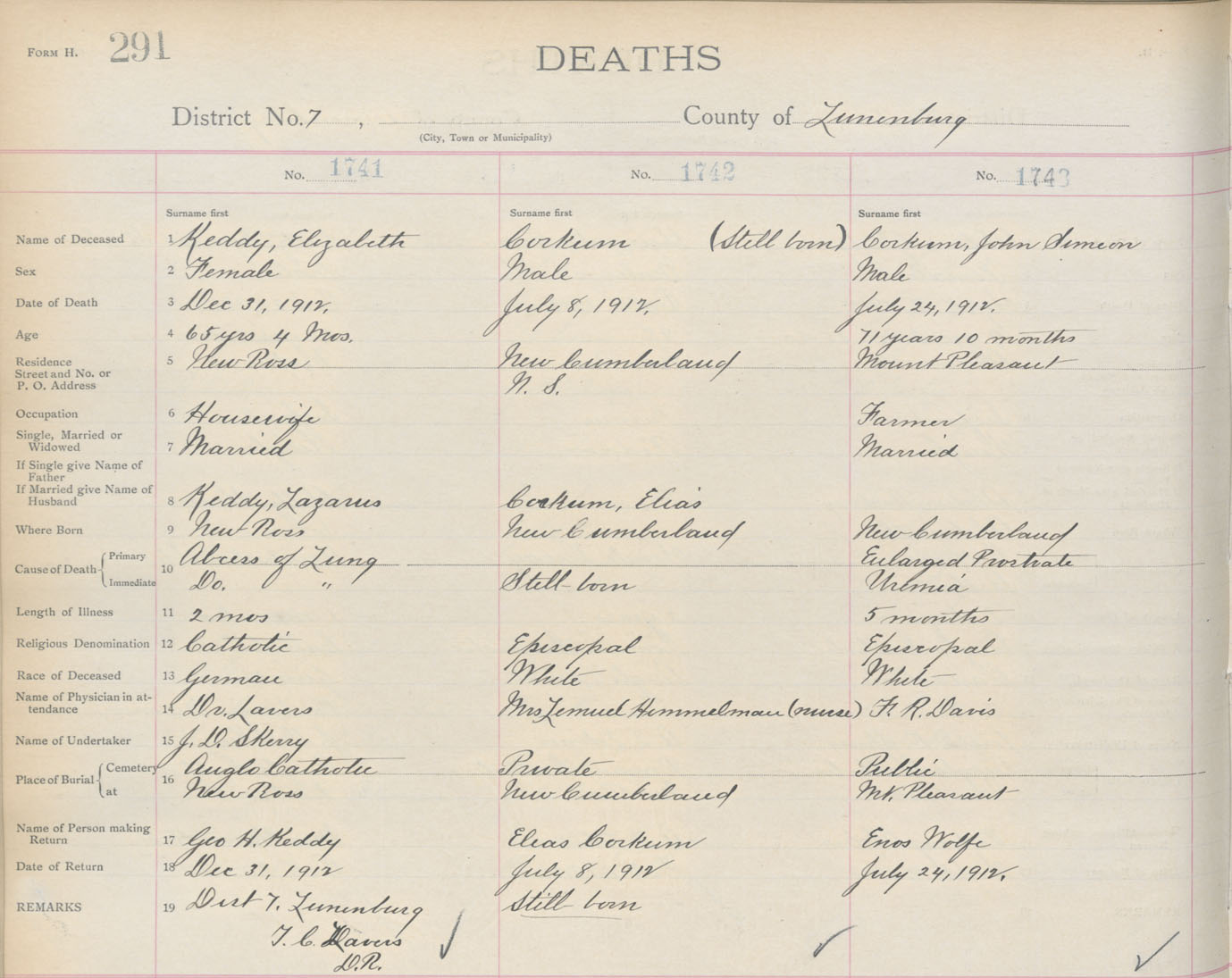 Death Registration: Year: 1912 book: 13 page: 291 number: 1743