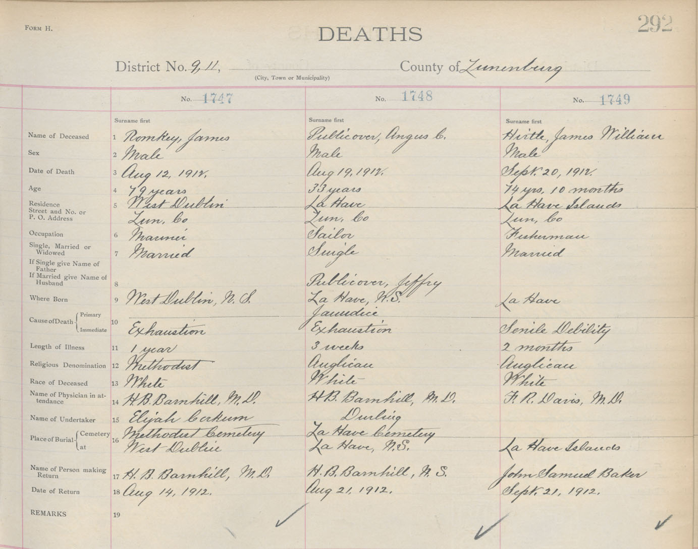 Death Registration: Year: 1912 book: 13 page: 292 number: 1749