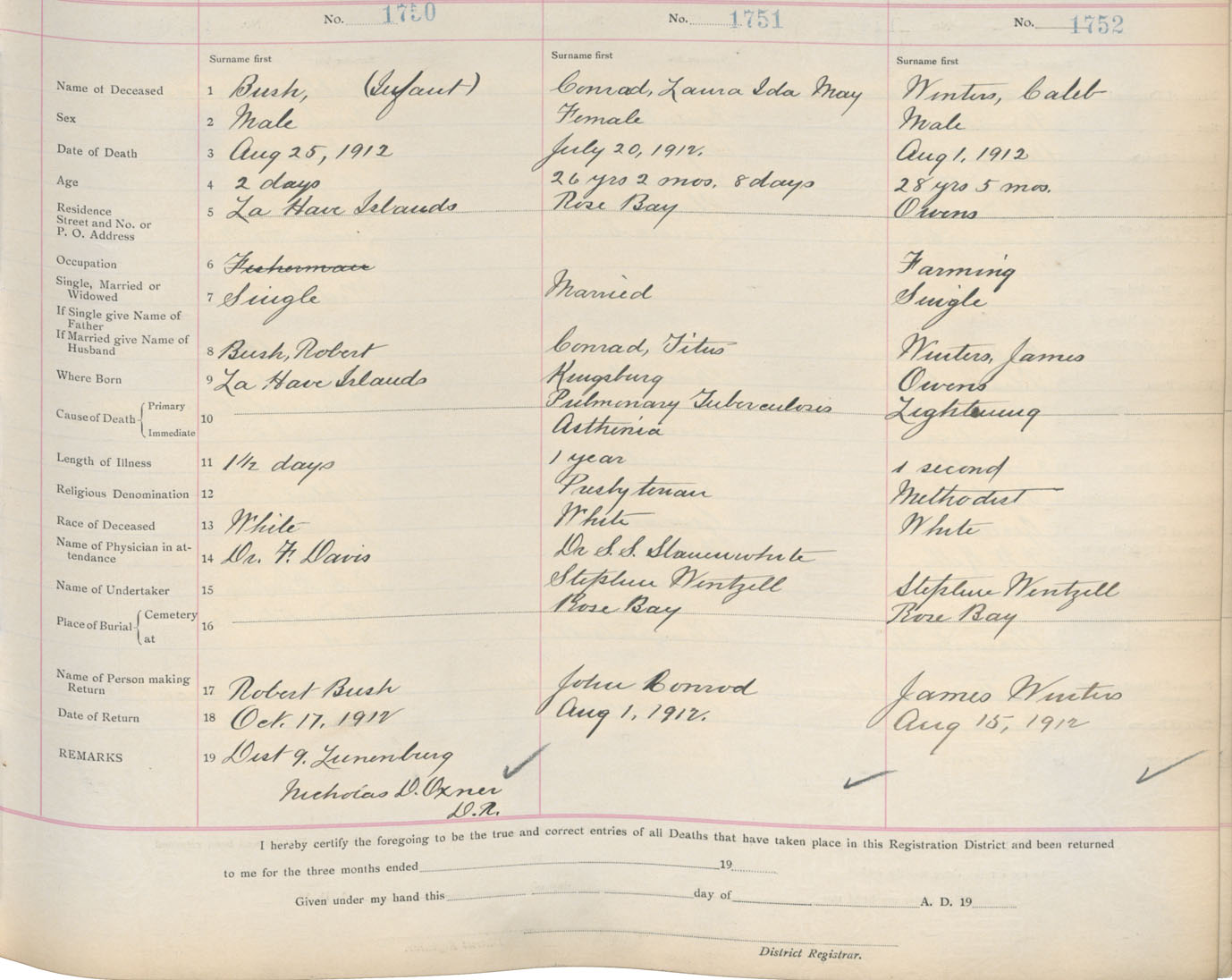 Death Registration: Year: 1912 book: 13 page: 292 number: 1752