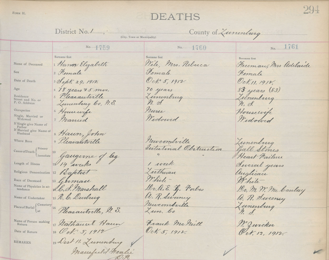 Death Registration: Year: 1912 book: 13 page: 294 number: 1761