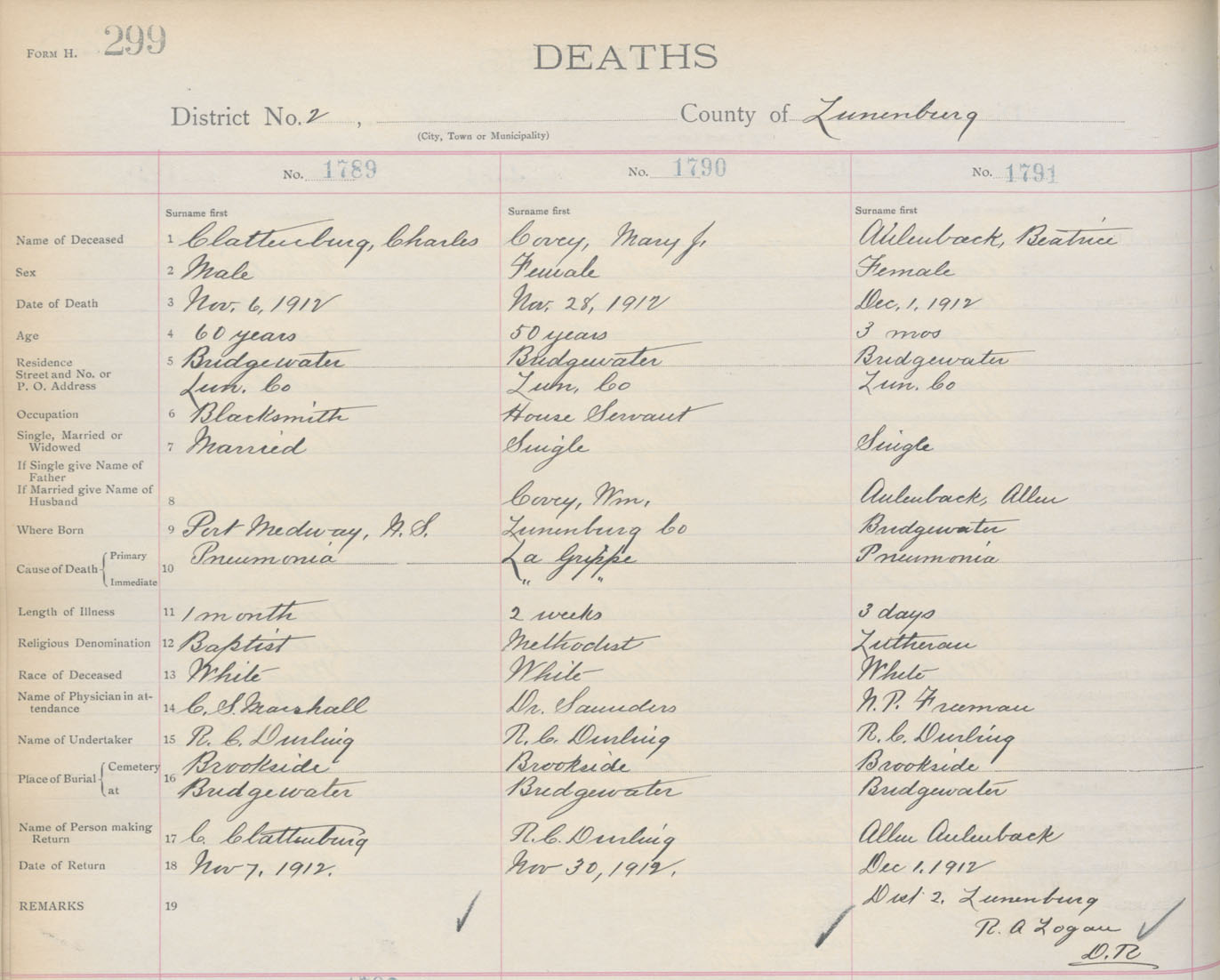 Death Registration: Year: 1912 book: 13 page: 299 number: 1789