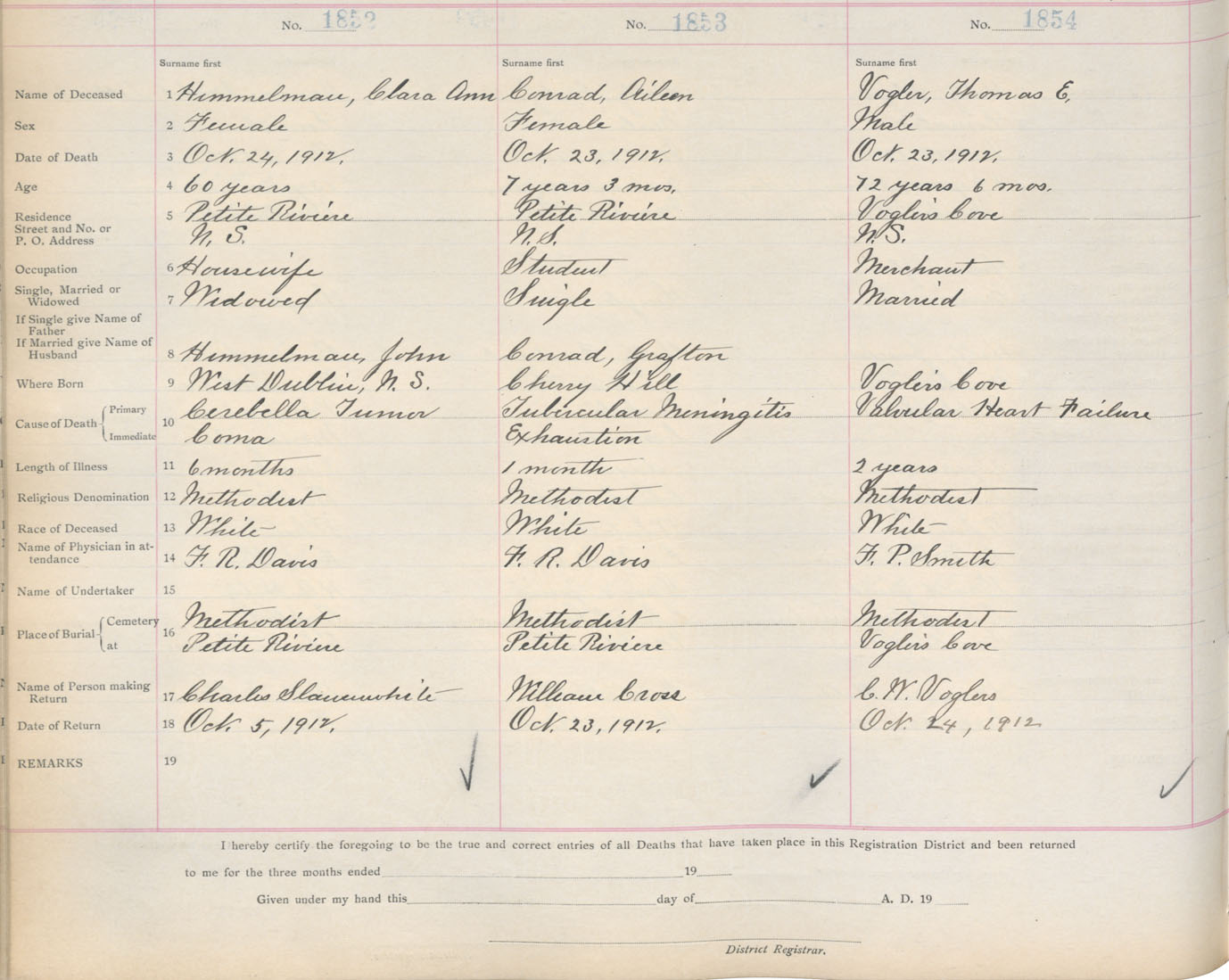 Death Registration: Year: 1912 book: 13 page: 309 number: 1852