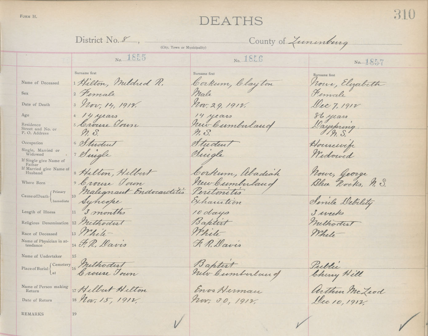 Death Registration: Year: 1912 book: 13 page: 310 number: 1855