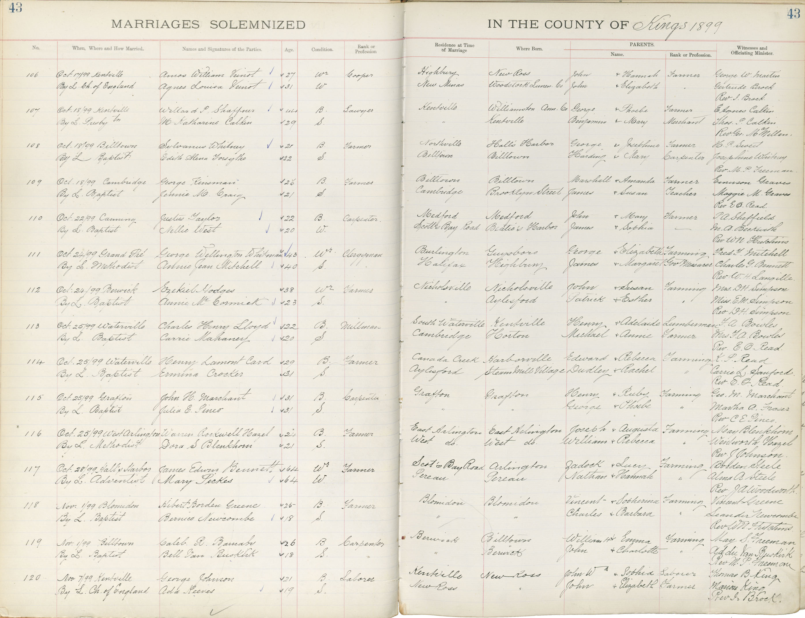 Registration: Year: 1899 book: 1827 page: 43 number: 106