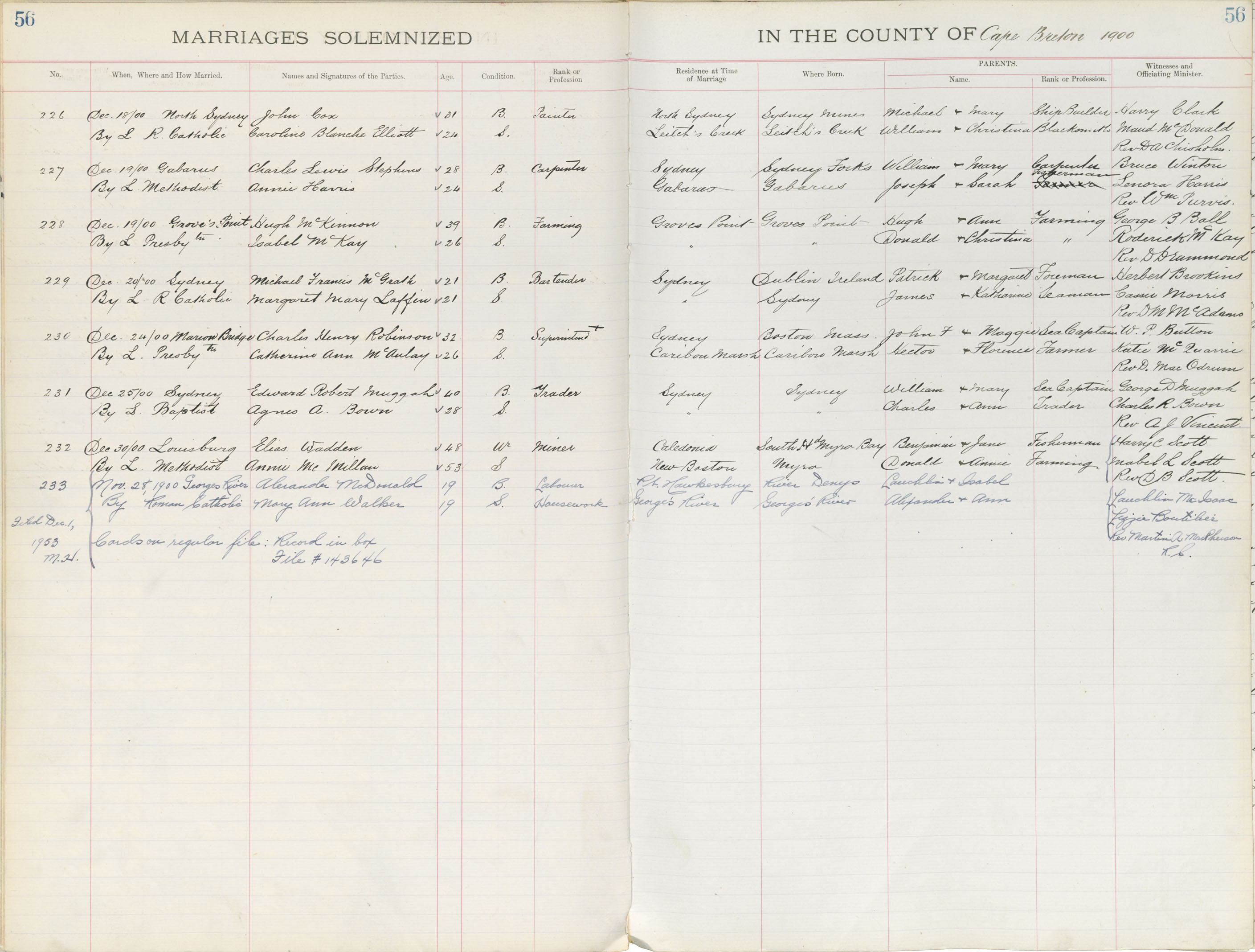 Registration: Year: 1900 book: 1805 page: 56 number: 233