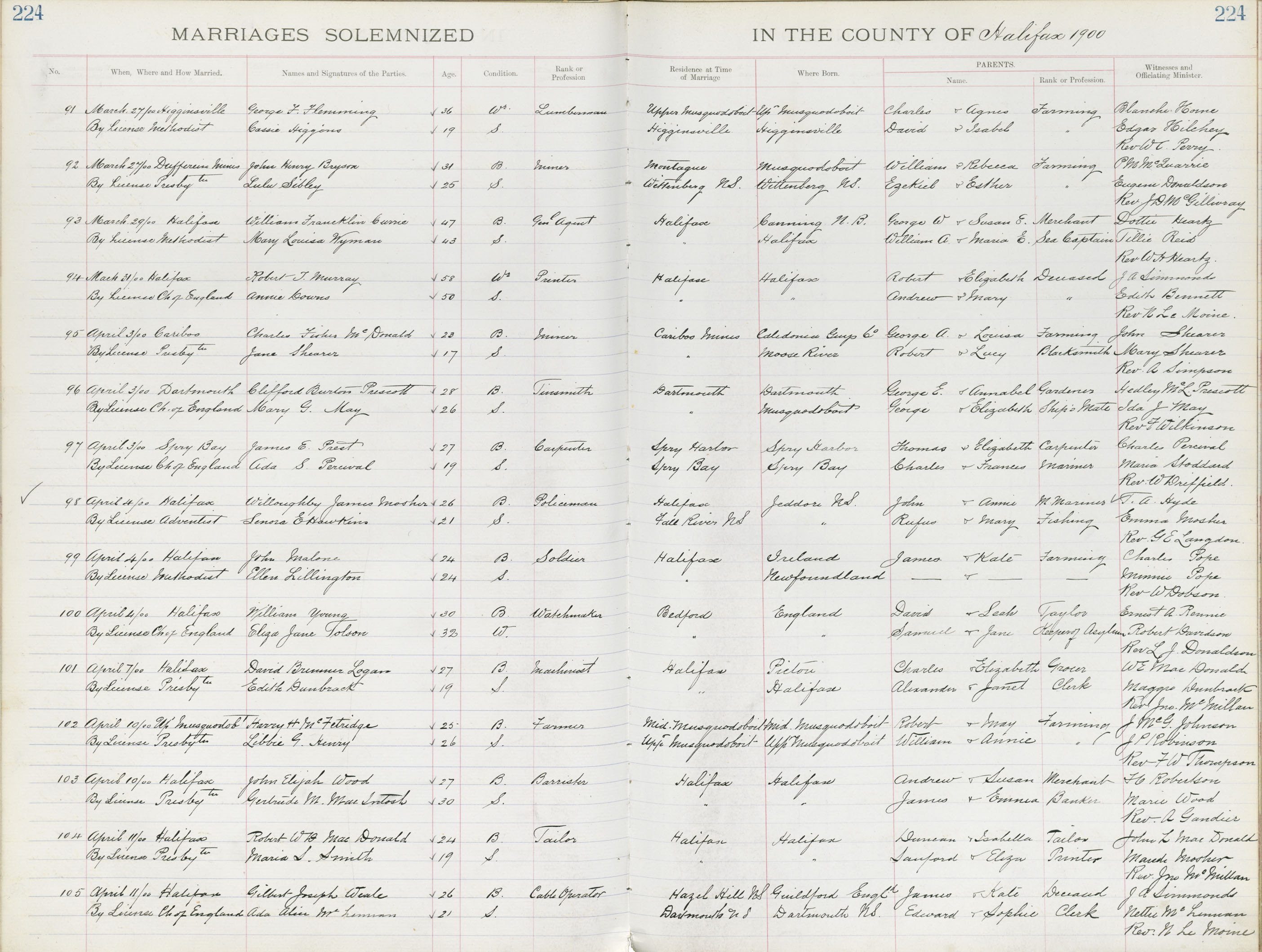 Registration: Year: 1900 book: 1819 page: 224 number: 105