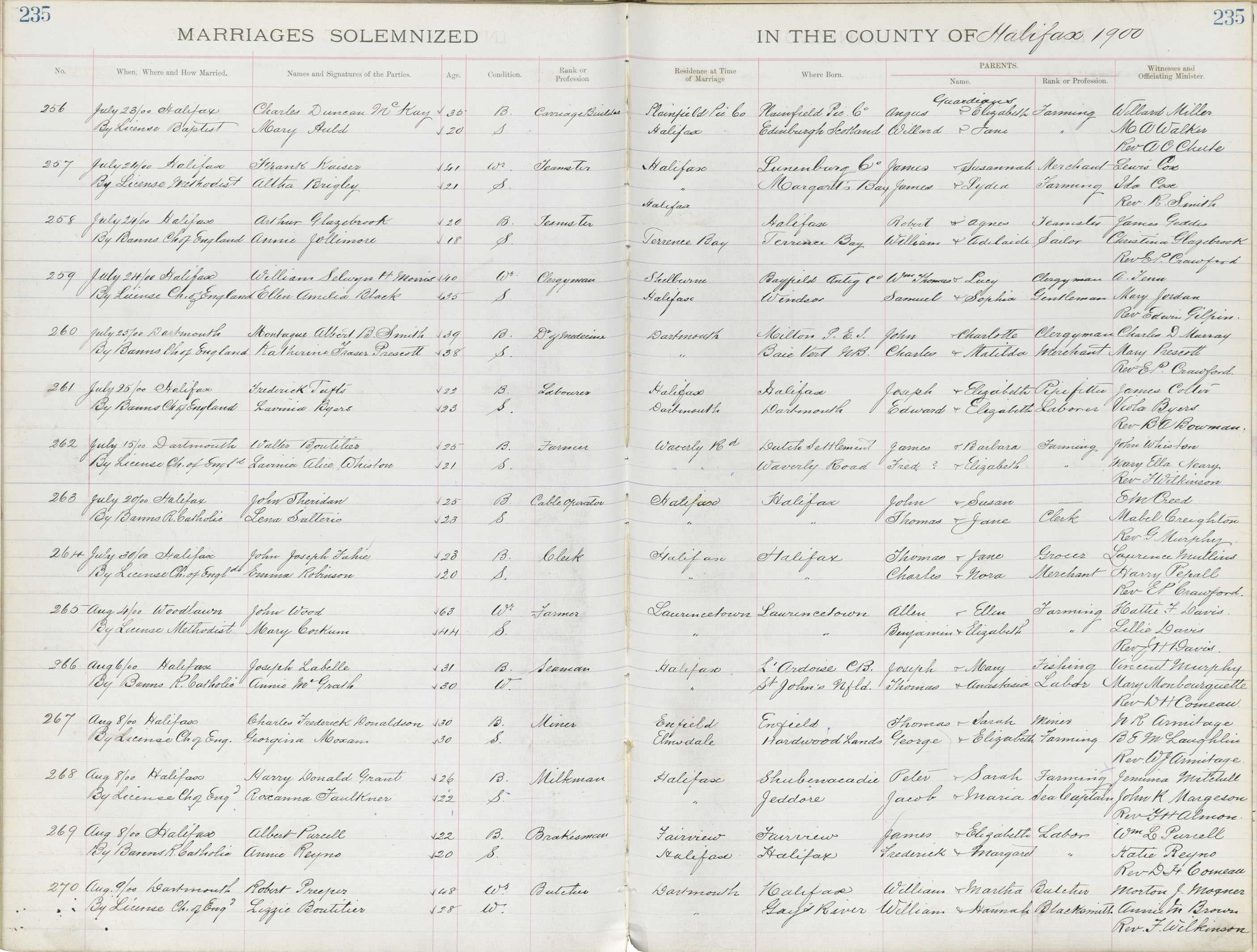 Registration: Year: 1900 book: 1819 page: 235 number: 270