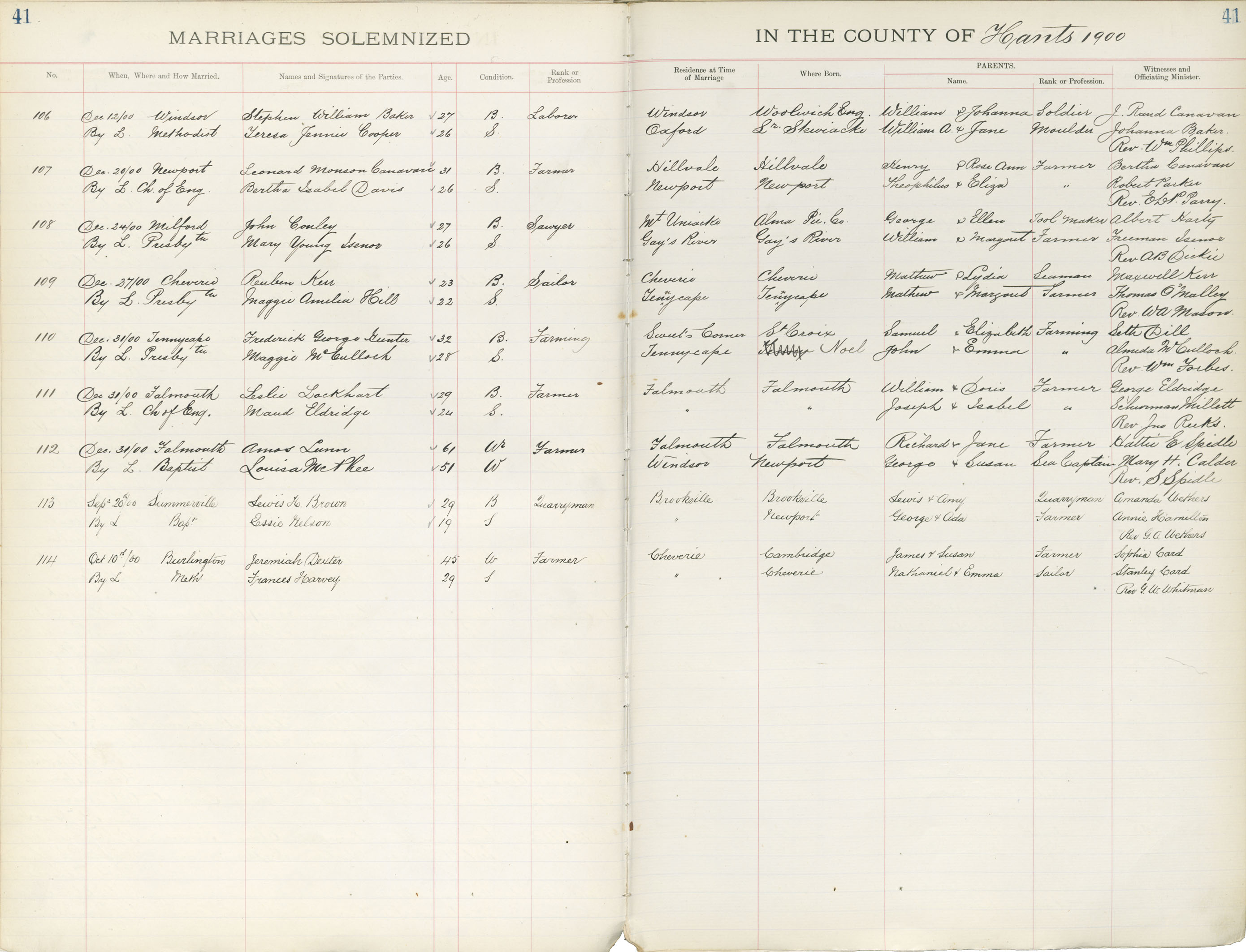 Registration: Year: 1900 book: 1824 page: 41 number: 106
