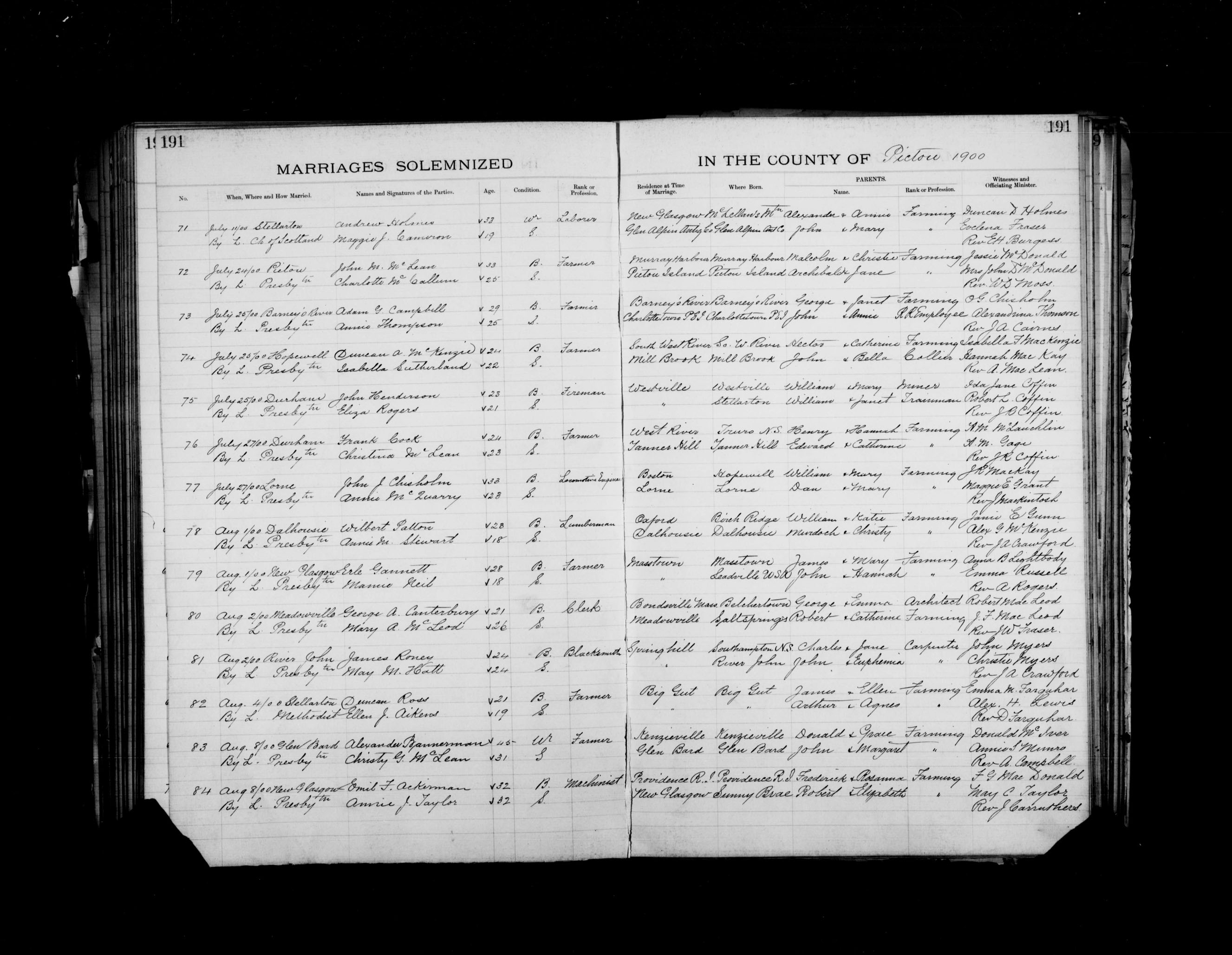 Registration: Year: 1900 book: 1832 page: 191 number: 84