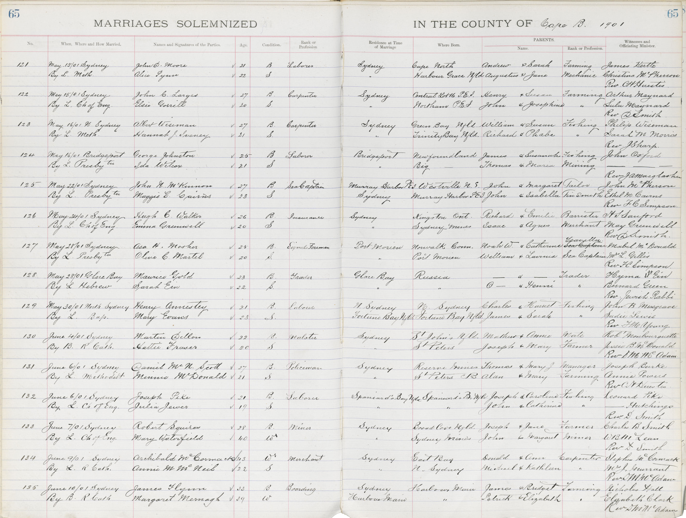 Registration: Year: 1901 book: 1805 page: 65 number: 135