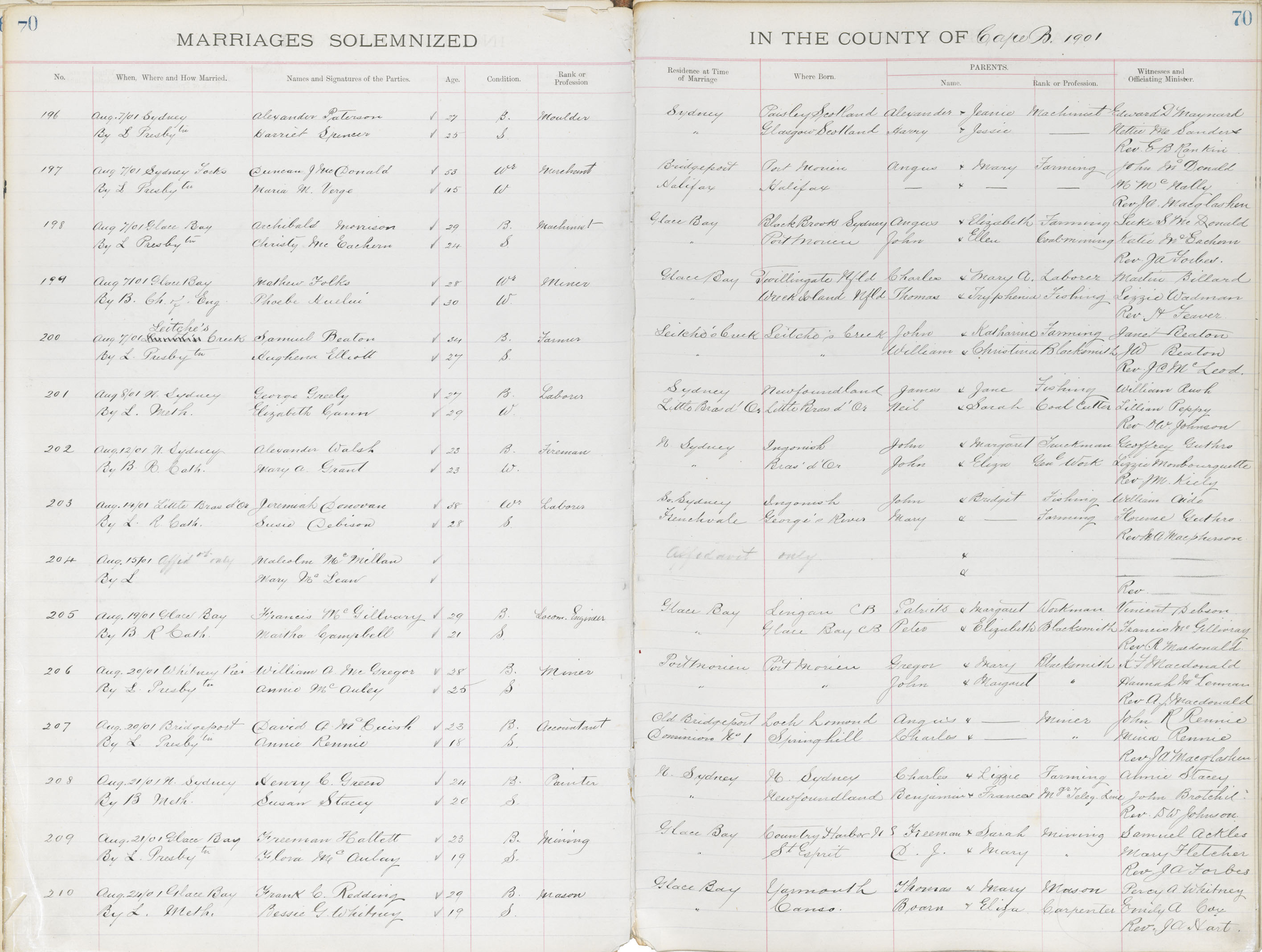 Registration: Year: 1901 book: 1805 page: 70 number: 196