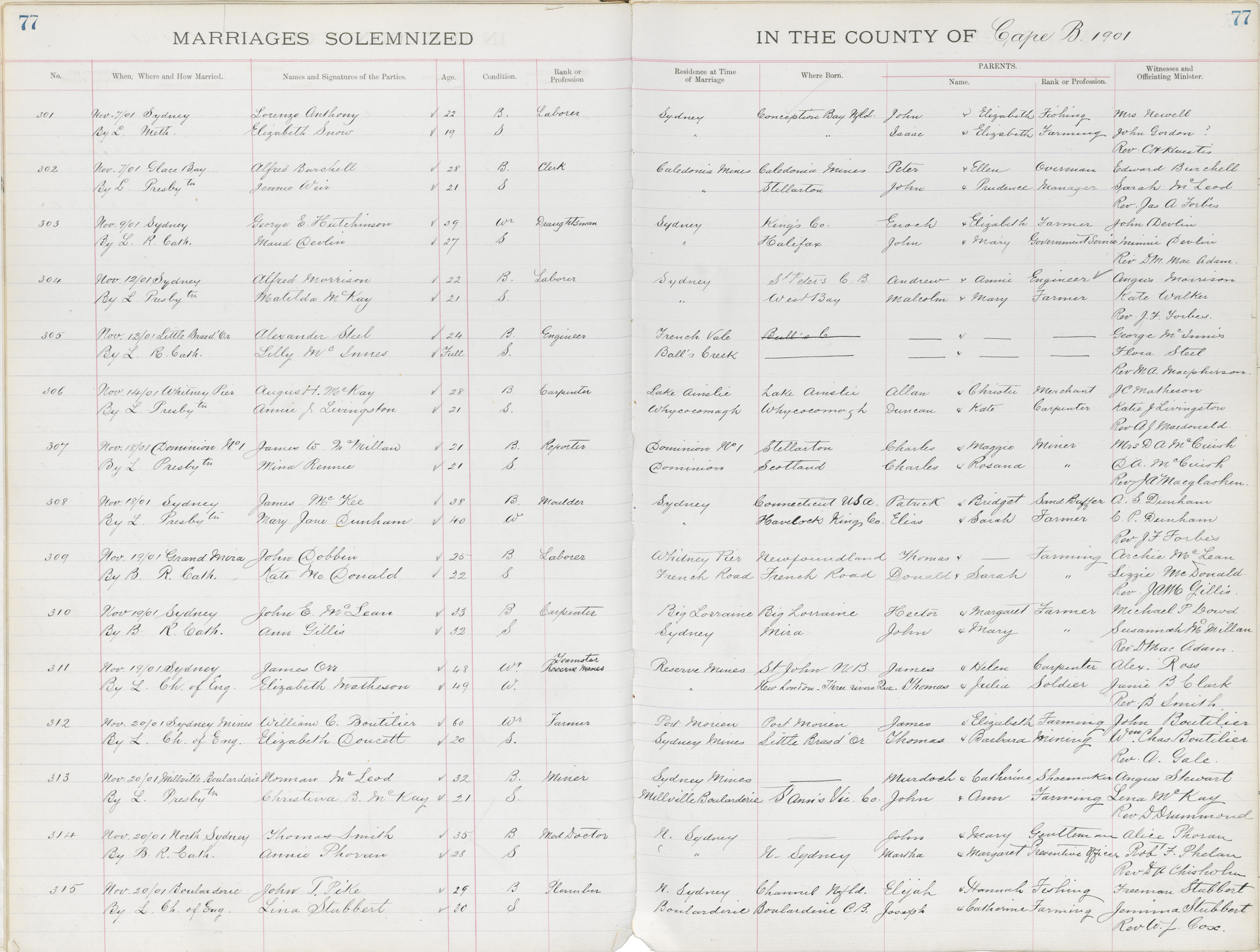 Registration: Year: 1901 book: 1805 page: 77 number: 301