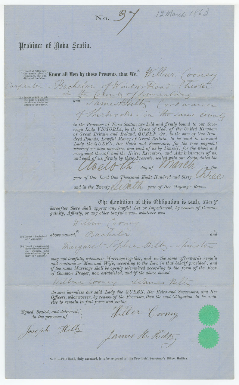 Note: signed by James Hiltz, New Ross (Sherbrooke), cordwain