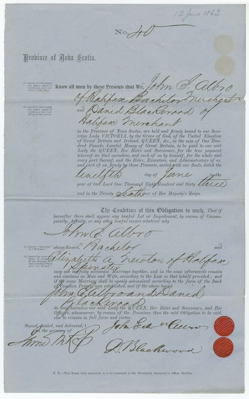 Note: signed by David Blackwood, Halifax, merchant