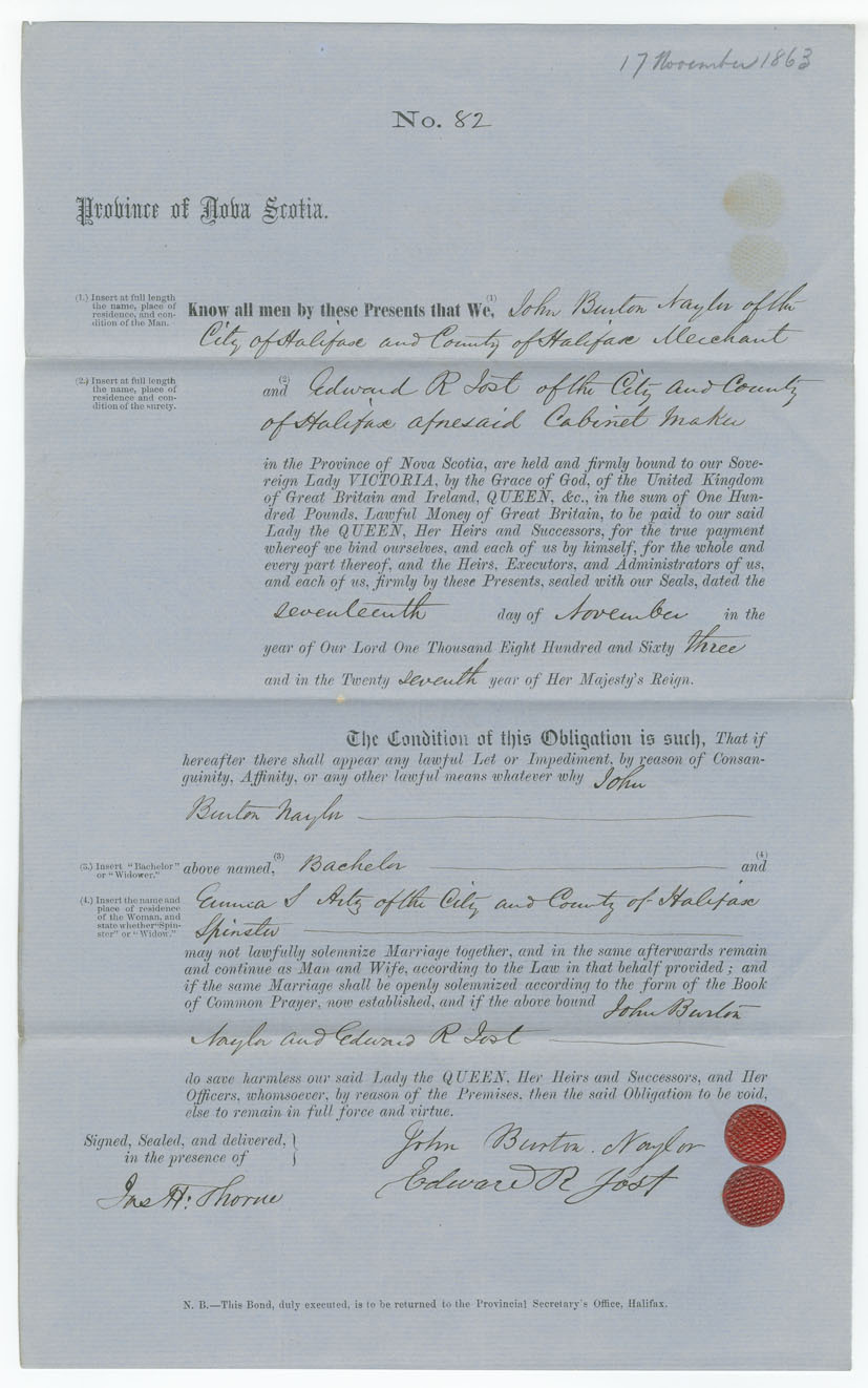 Note: signed by Edward R. Jost, Halifax, cabinetmaker